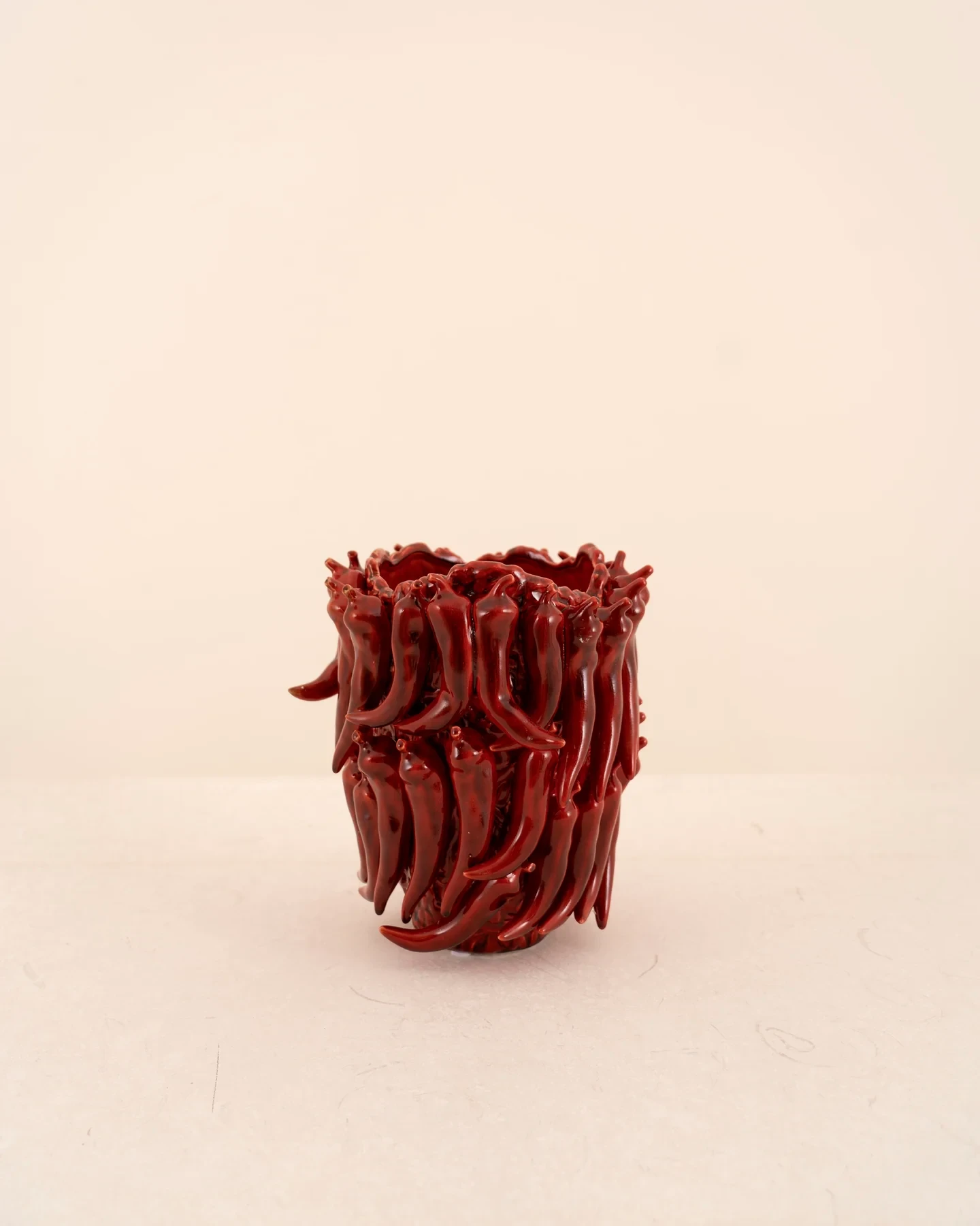 Me declaro fan absoluta de este jarrón fabricado en porcelana con forma de guindillas en color rojo.