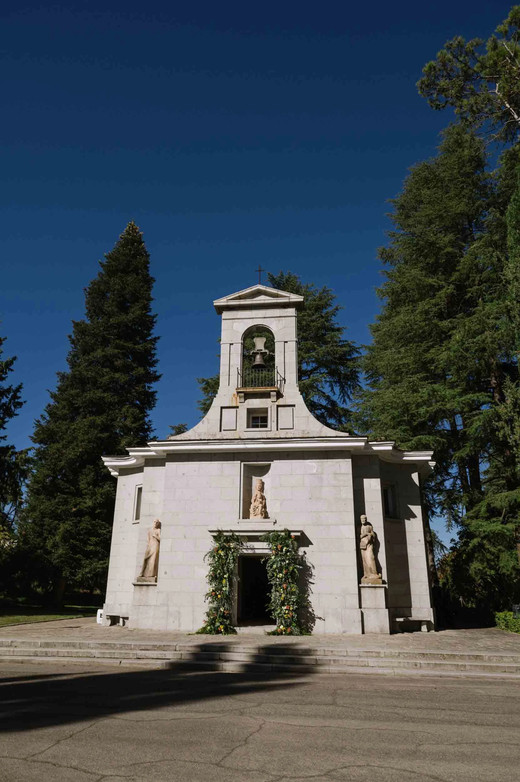 La ceremonia se celebró en la Ermita Nuestra Señora de Begoña, en Aravaca. De la música se encargó Quinteto recuerdo.