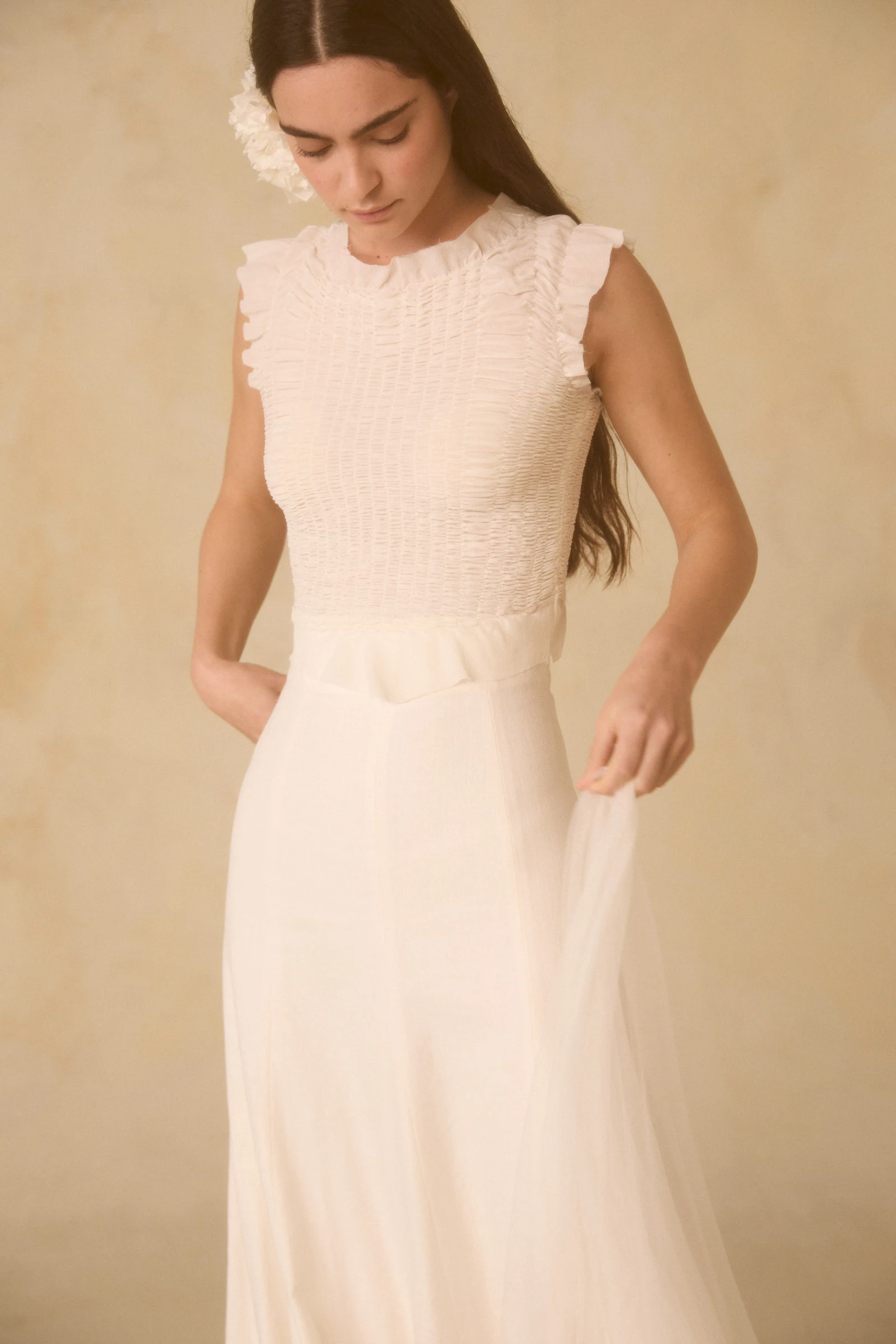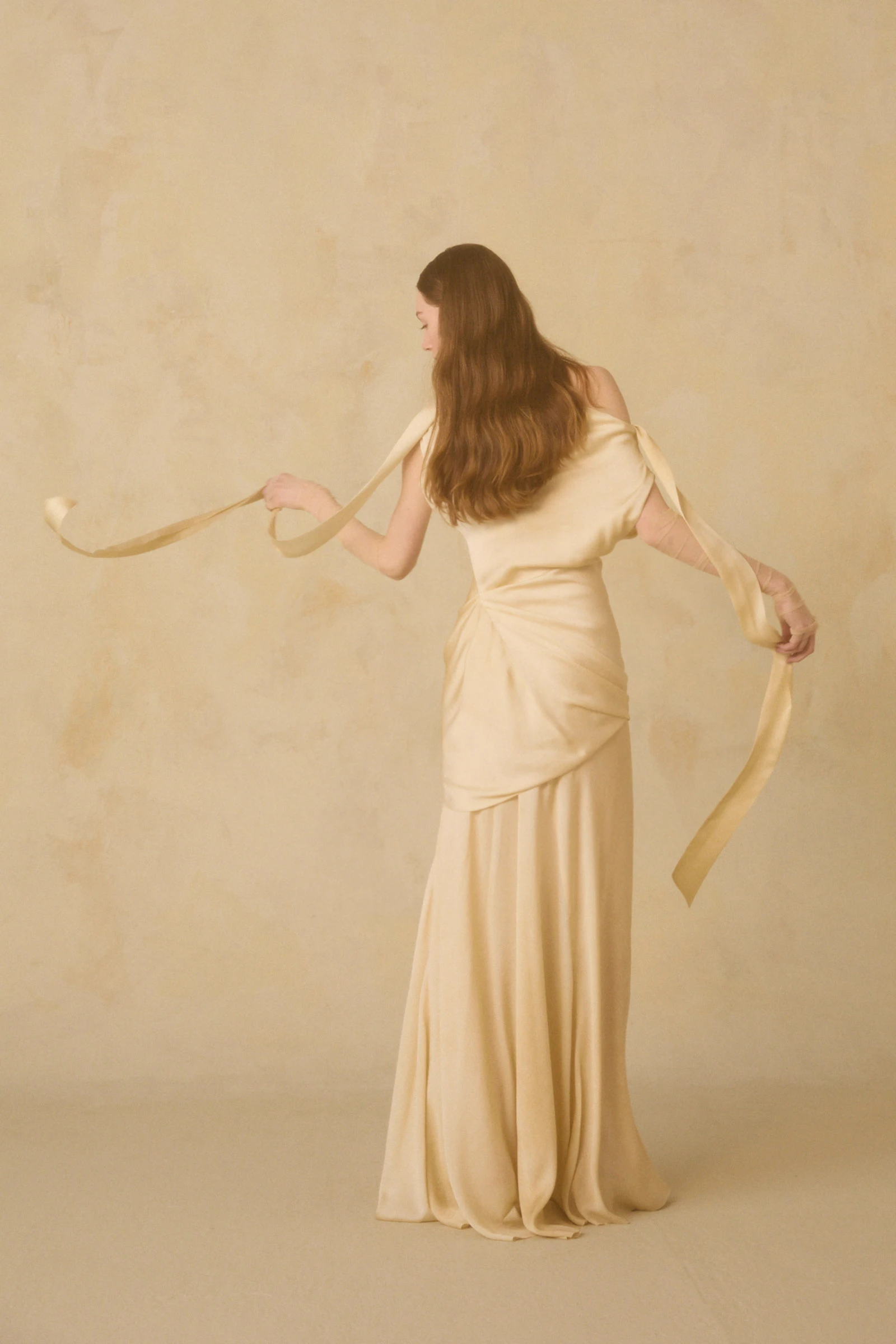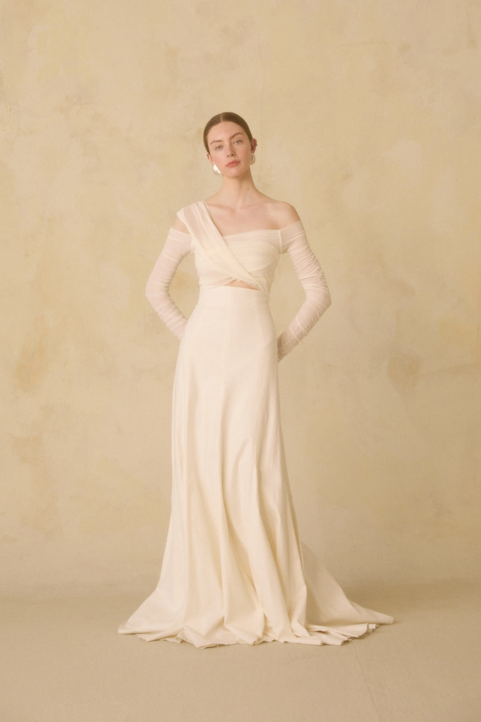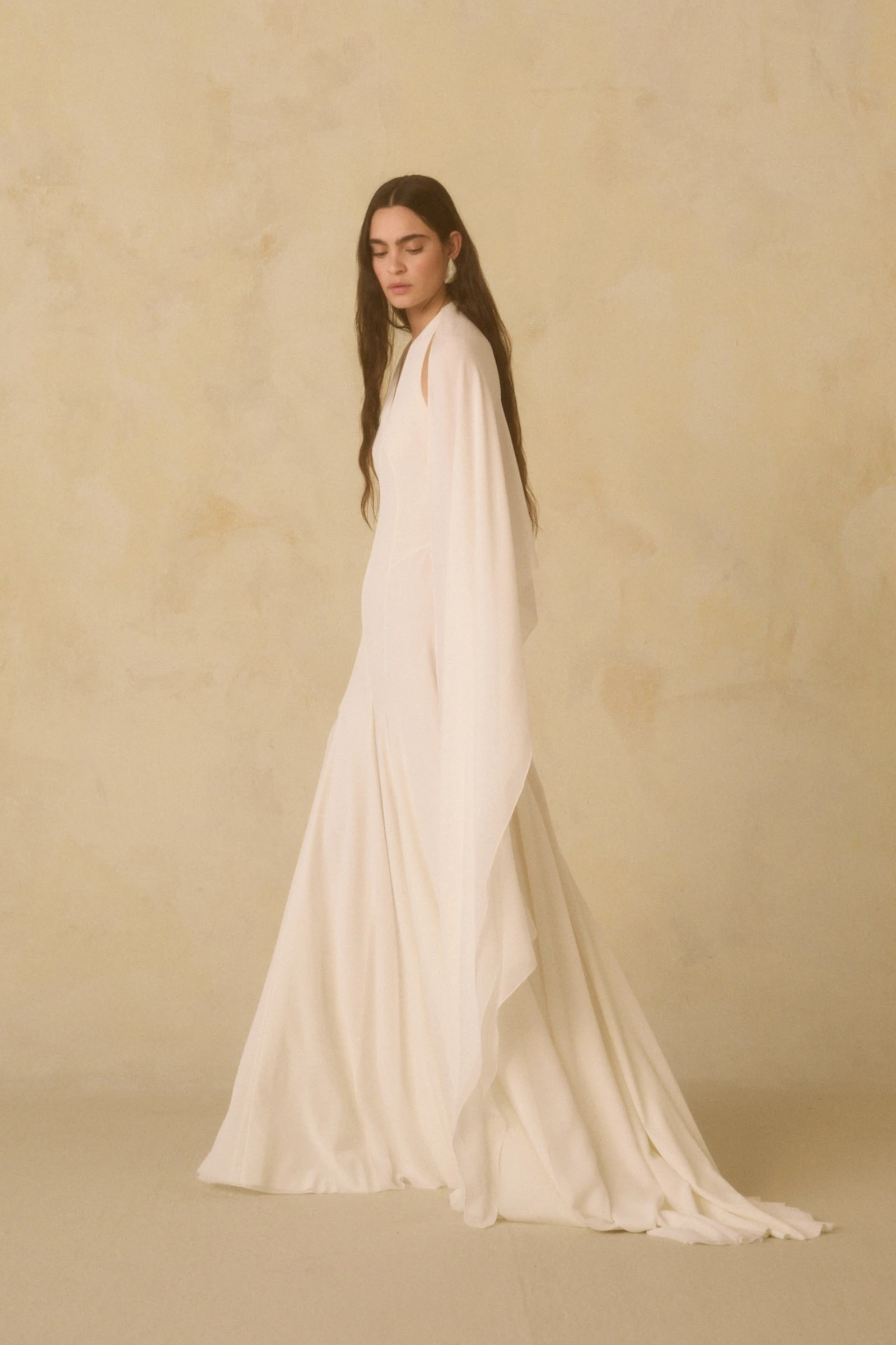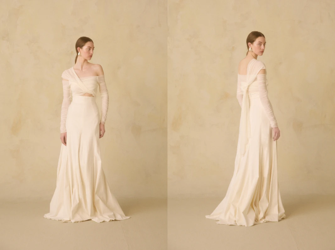 Su nueva colección de novias refleja ese equilibrio tan Cortana entre lo artesanal y lo contemporáneo. Los vestidos (y los conjuntos, que son una maravilla) están confeccionados con sedas y linos artesanales traídos de la India, en tonos marfil y champán. Una colección que habla de libertad, de autenticidad y de esa luz interior que hace única a cada mujer.