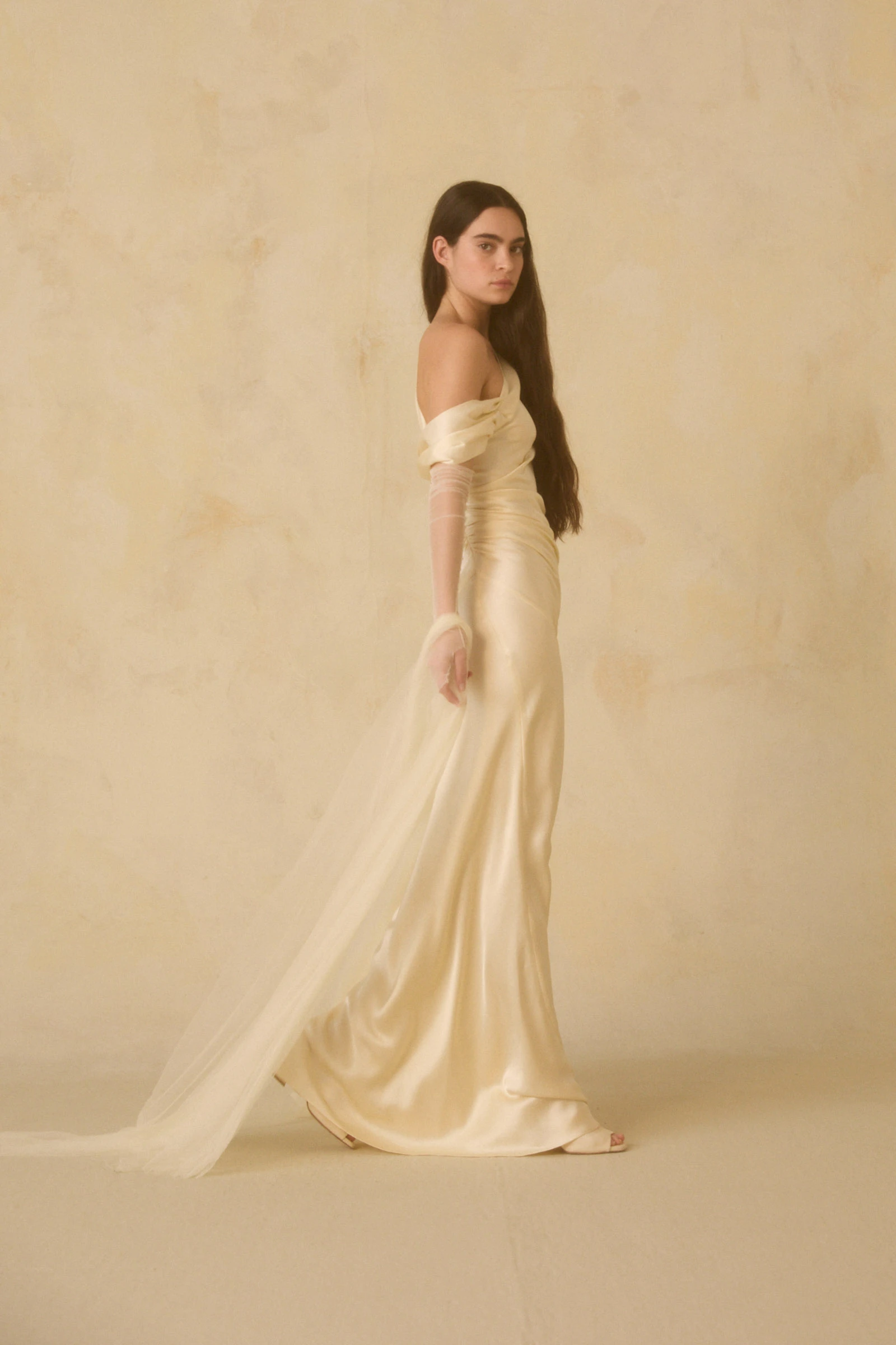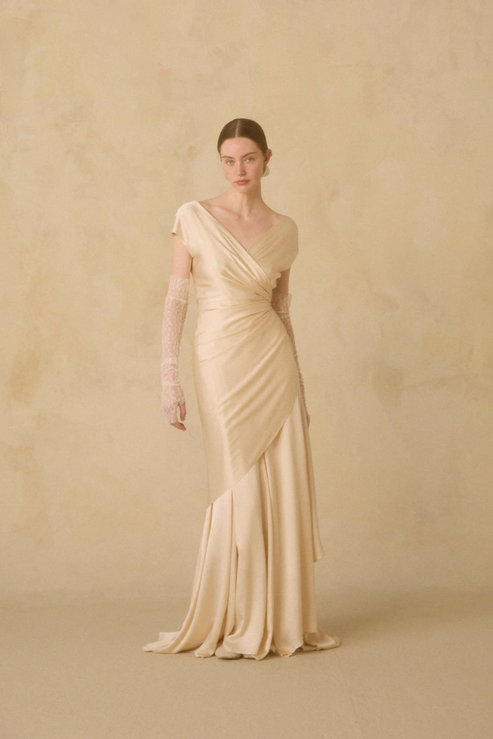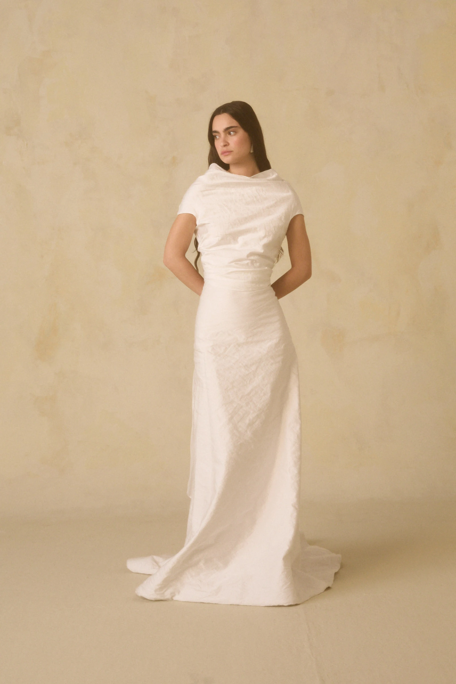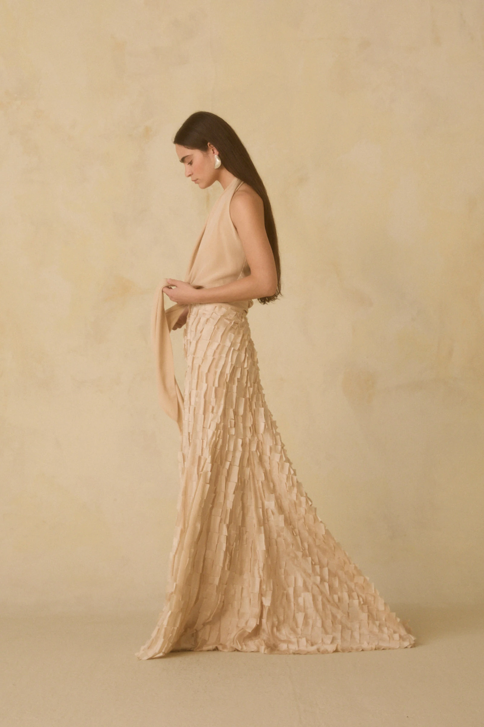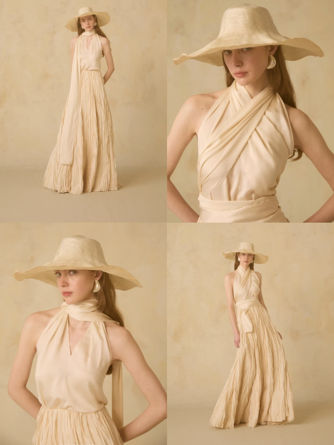 Su nueva colección de novias refleja ese equilibrio tan Cortana entre lo artesanal y lo contemporáneo. Los vestidos (y los conjuntos, que son una maravilla) están confeccionados con sedas y linos artesanales traídos de la India, en tonos marfil y champán. Una colección que habla de libertad, de autenticidad y de esa luz interior que hace única a cada mujer.