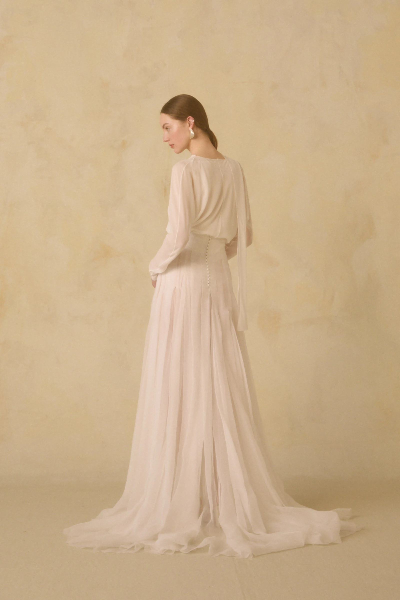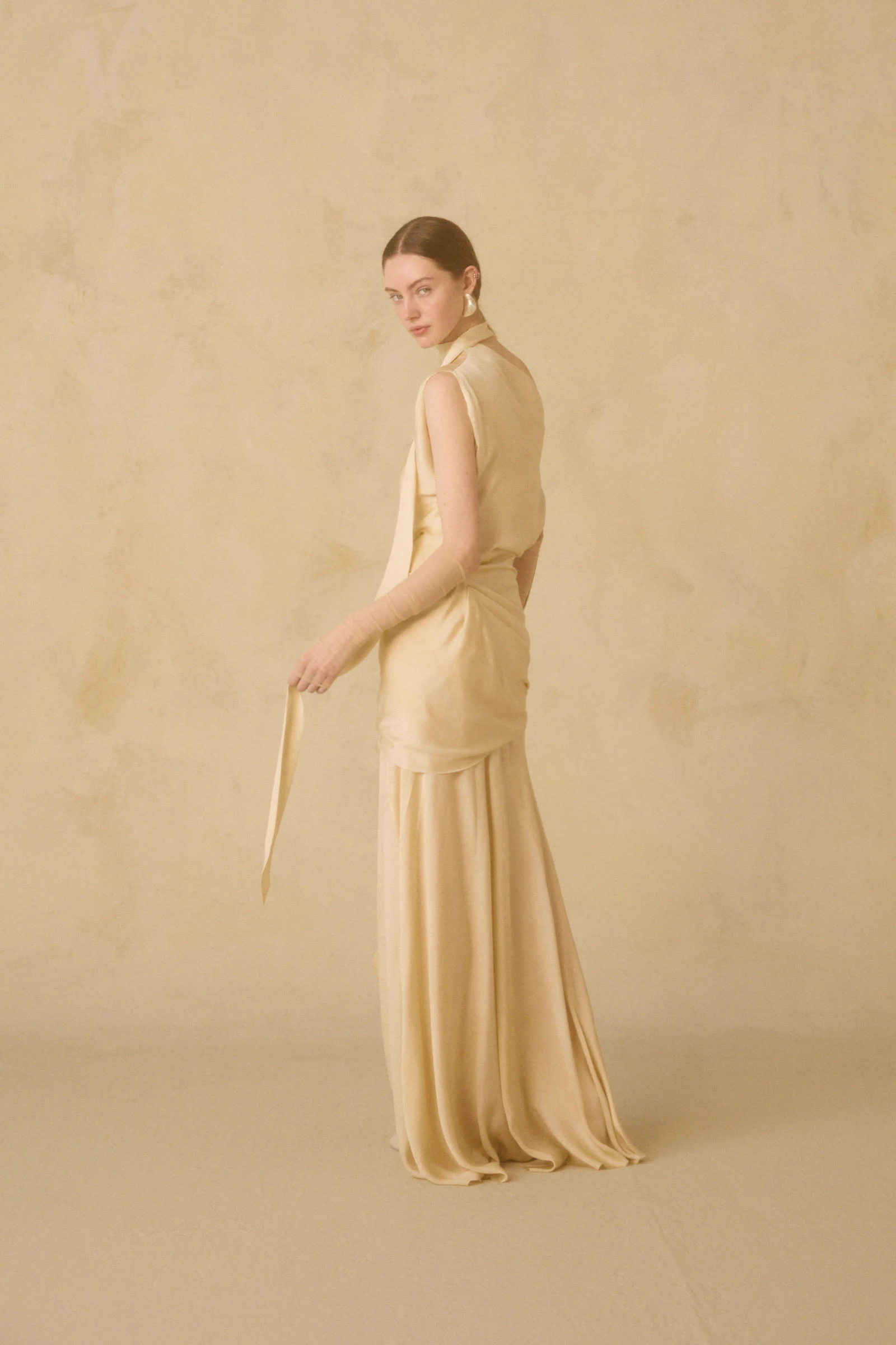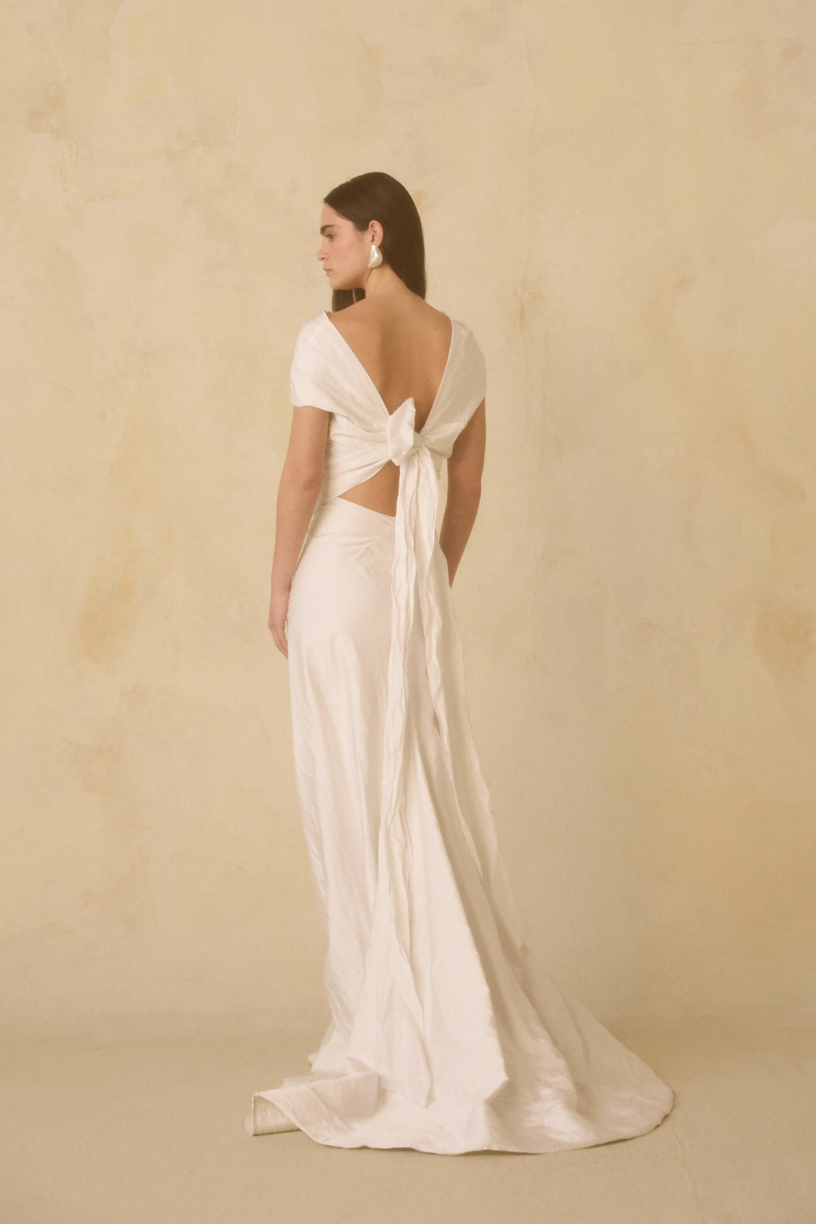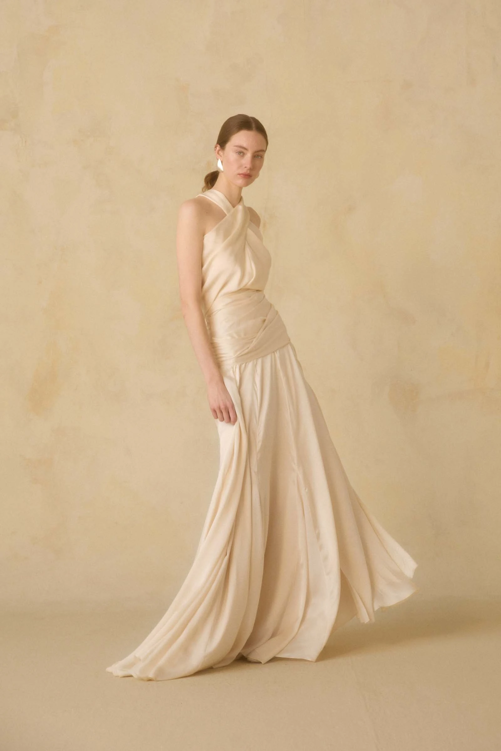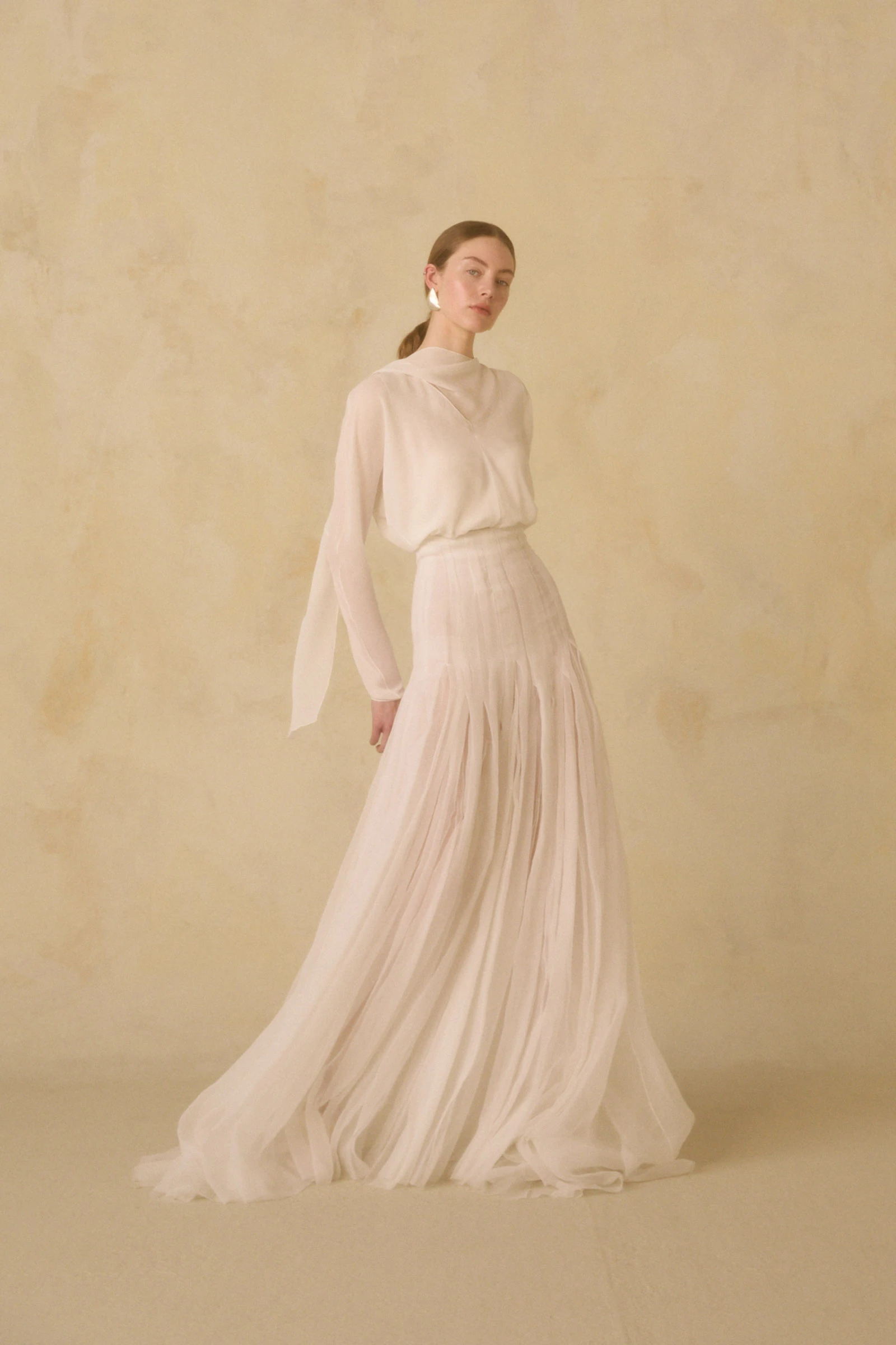 Su nueva colección de novias refleja ese equilibrio tan Cortana entre lo artesanal y lo contemporáneo. Los vestidos (y los conjuntos, que son una maravilla) están confeccionados con sedas y linos artesanales traídos de la India, en tonos marfil y champán. Una colección que habla de libertad, de autenticidad y de esa luz interior que hace única a cada mujer.