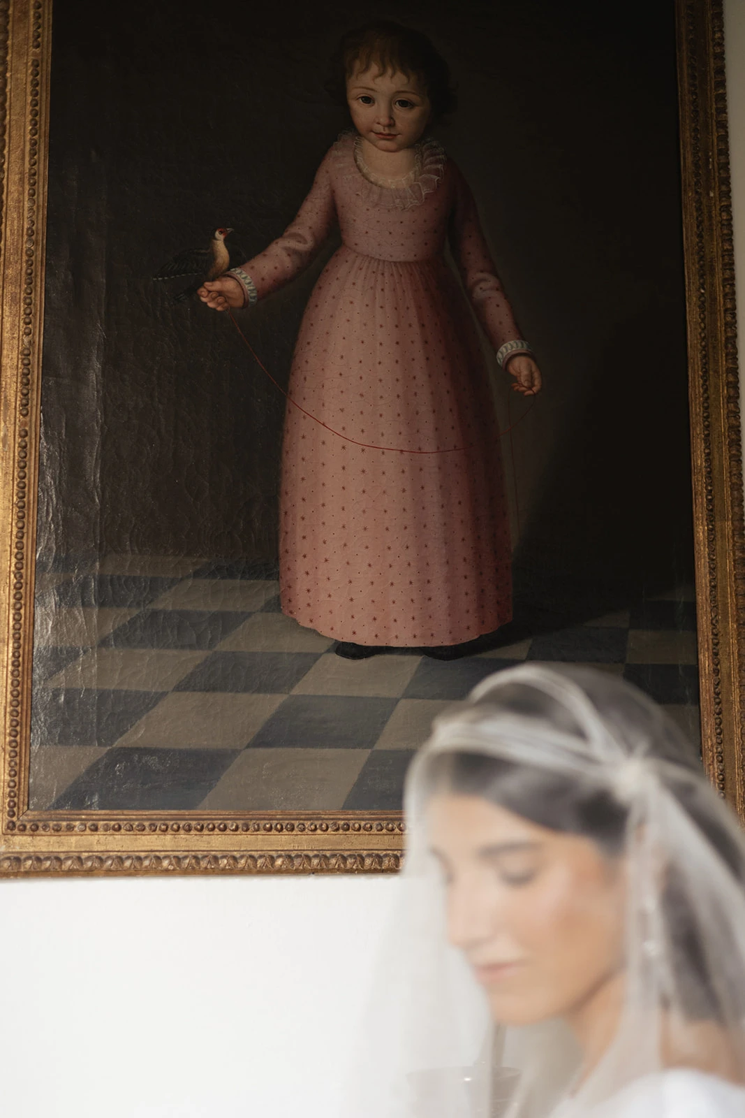 Llevó unos pendientes de M de Paulet y la maravillosa sortija de pedida que le regaló la familia de Pablo. «En el último momento, mi madre me enseñó un colgante, una joyita que pertenecía a mi abuela y que ella le había puesto mi madre llevó el día de su boda, en esa misma casa, hace más de treinta años. Fue emocionante. De ese modo, pude llevar a mi abuela conmigo a lo largo de todo el día».