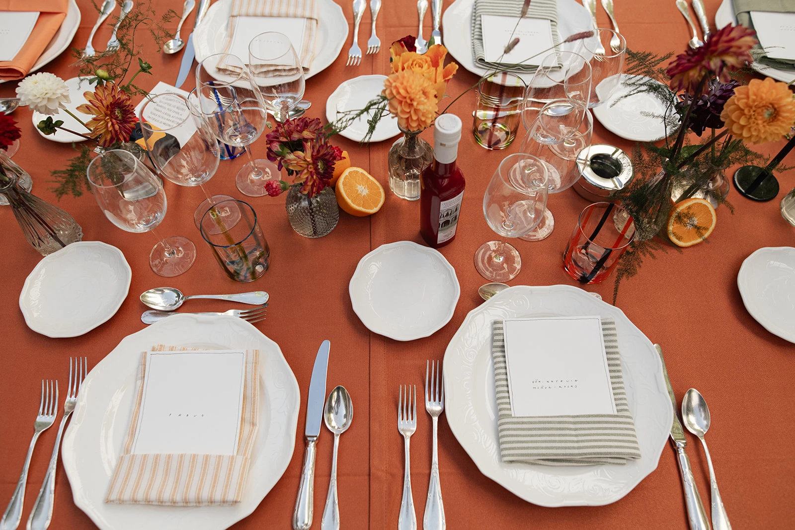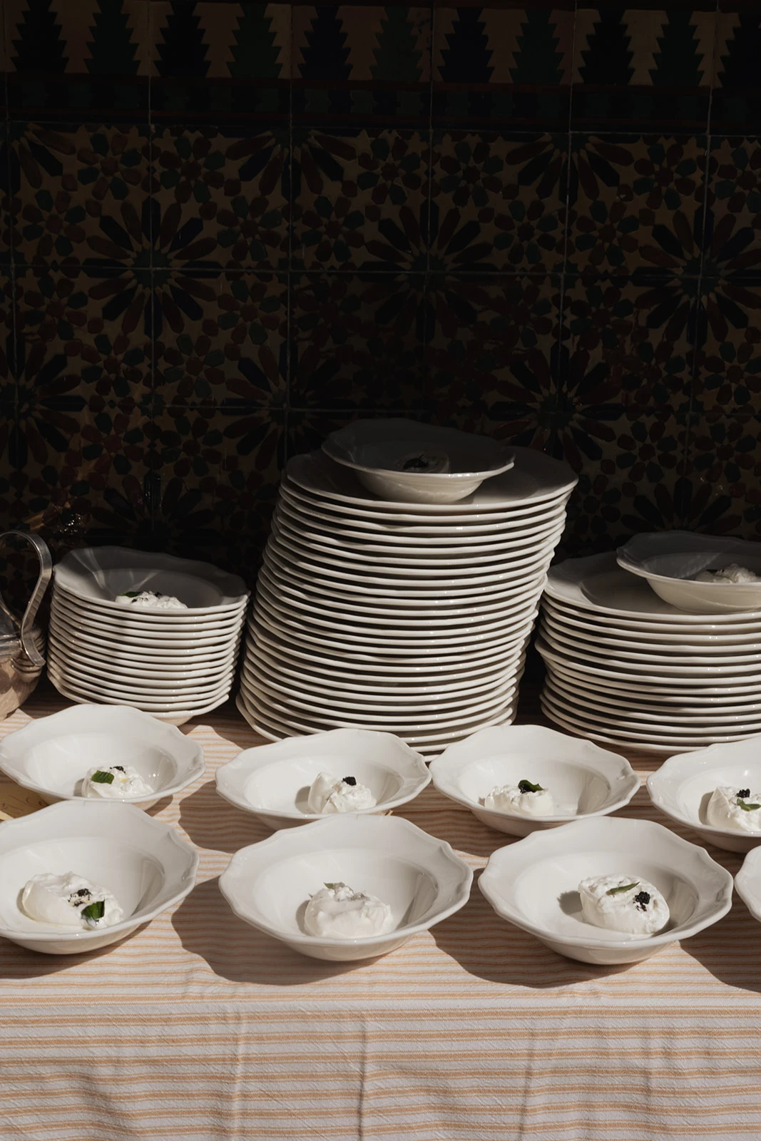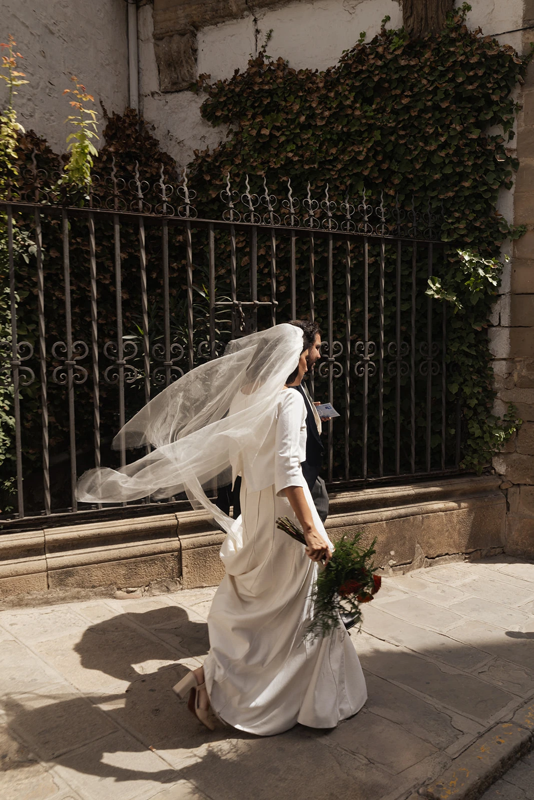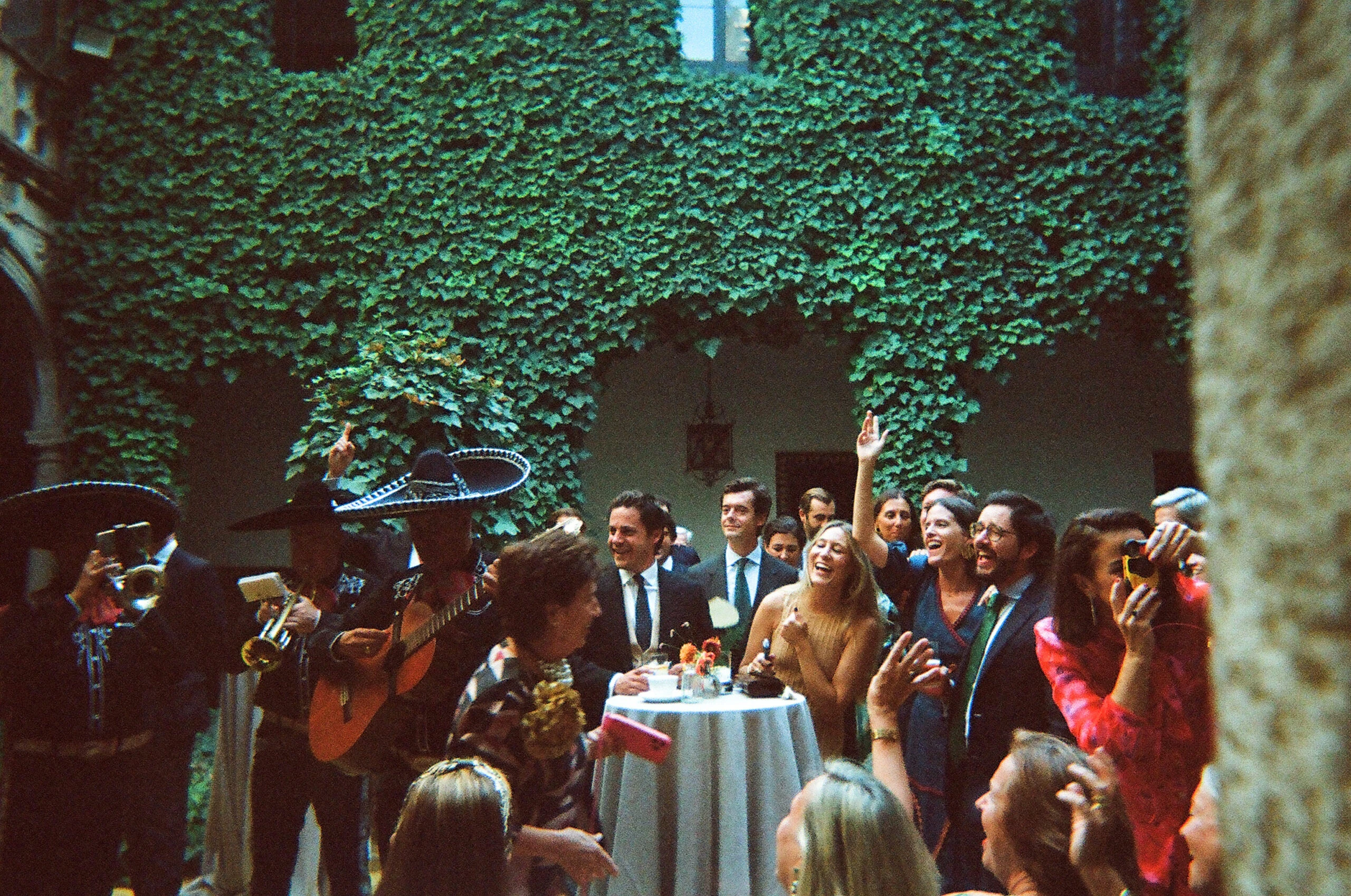 «Después de la ceremonia fuimos al Palacio de la Rambla, renacentista del siglo XVI. Mantenemos un vínculo muy especial porque pertenece a mi familia», explica la novia. Aunque el espacio no estuviese del todo adaptado para grandes celebraciones lo organizaron todo para celebrar allí su boda como un almuerzo familiar e íntimo, bonito y divertido por igual.
