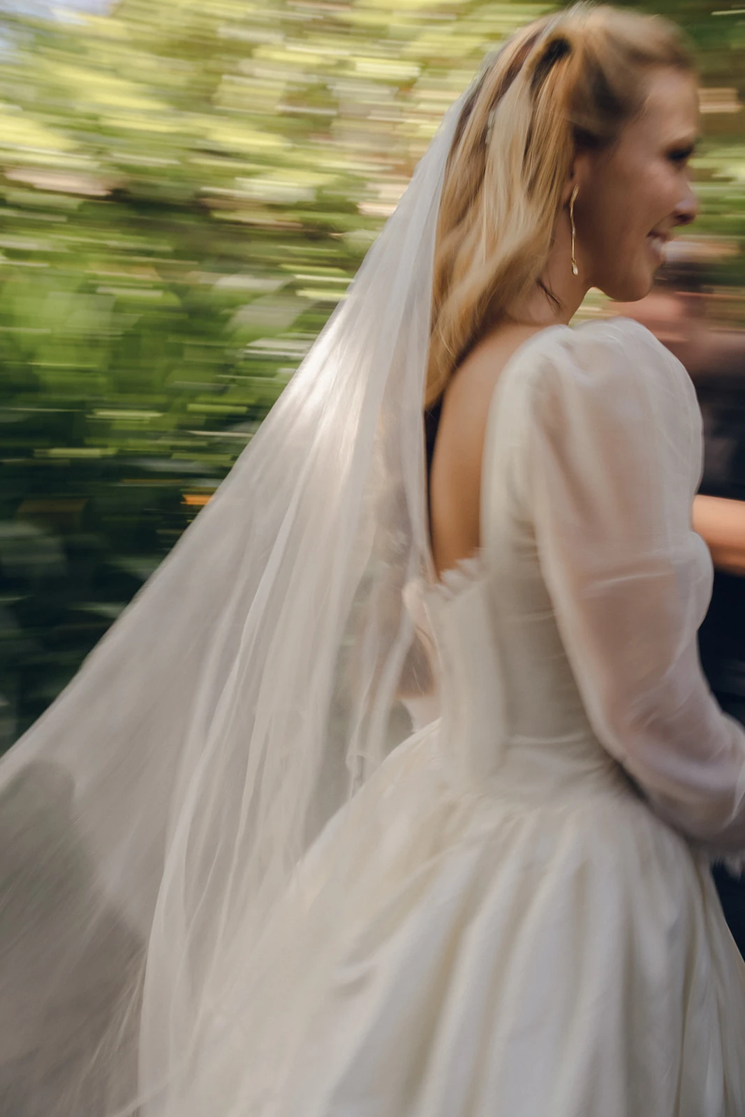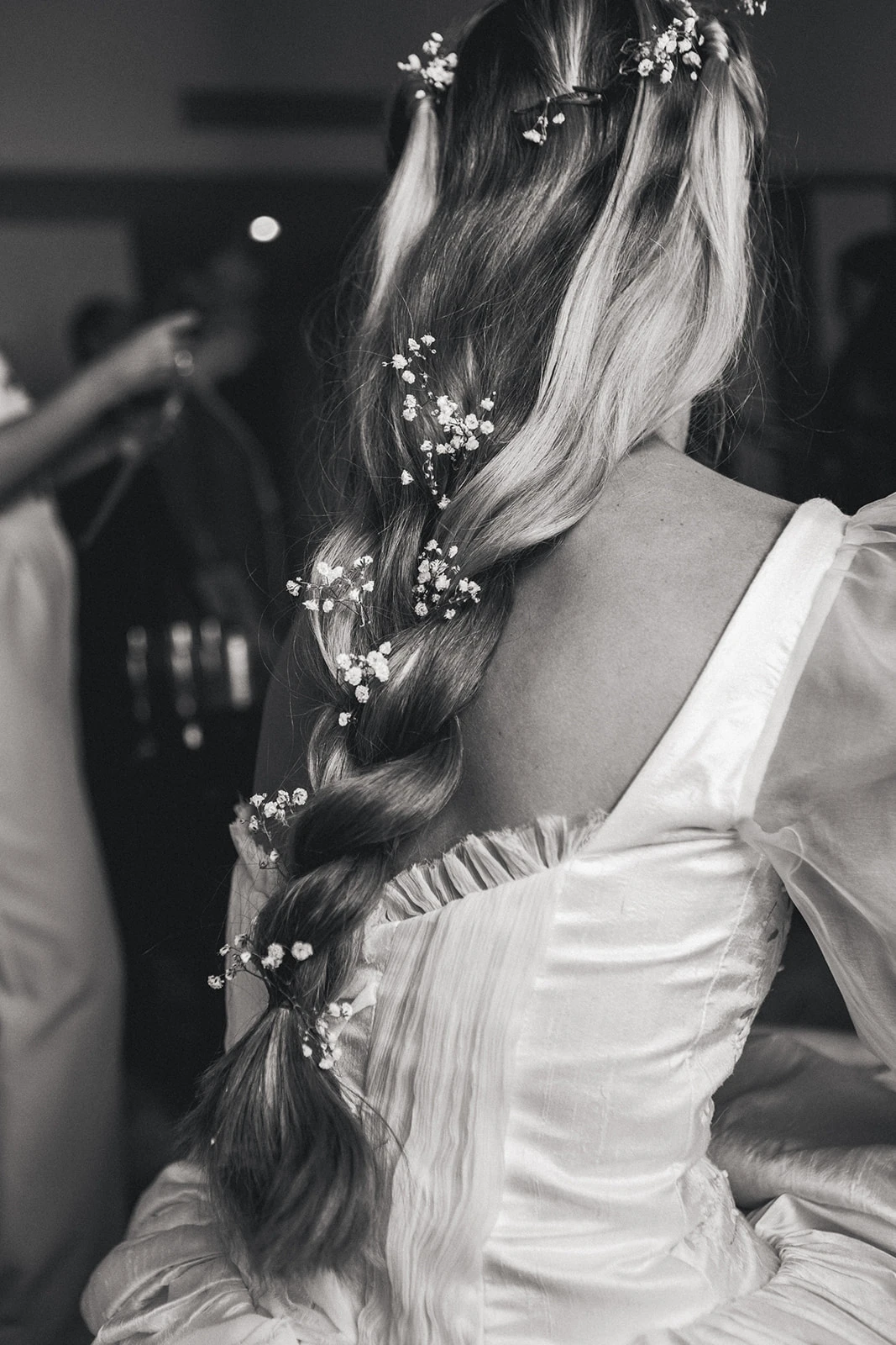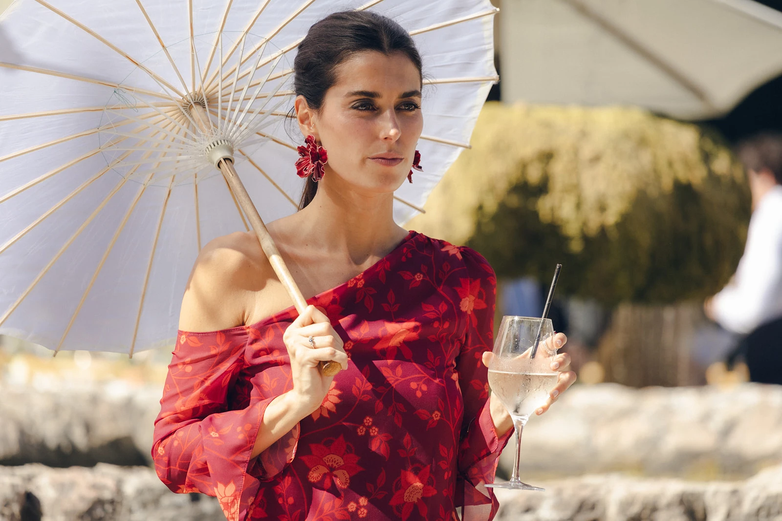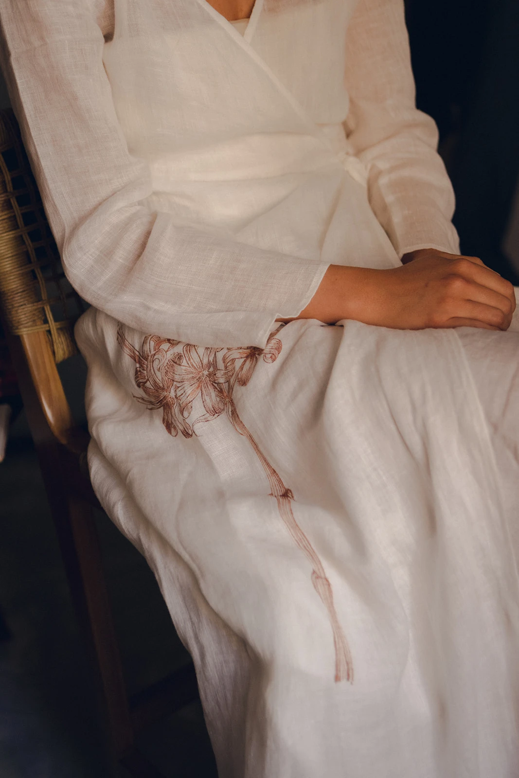 «Para el vestido confié en Claudia Llagostera. Tenía claro que quería un vestido elegante y clásico, pero adaptado a mi personalidad, más bohemia y campestre. Hicimos un híbrido estilo Bridgerton con seda salvaje y bordados de flores y ramitas». Llevaba un velo de seda salvaje, que combinaba perfecto con el peinado que le hizo Francesca Moreno.