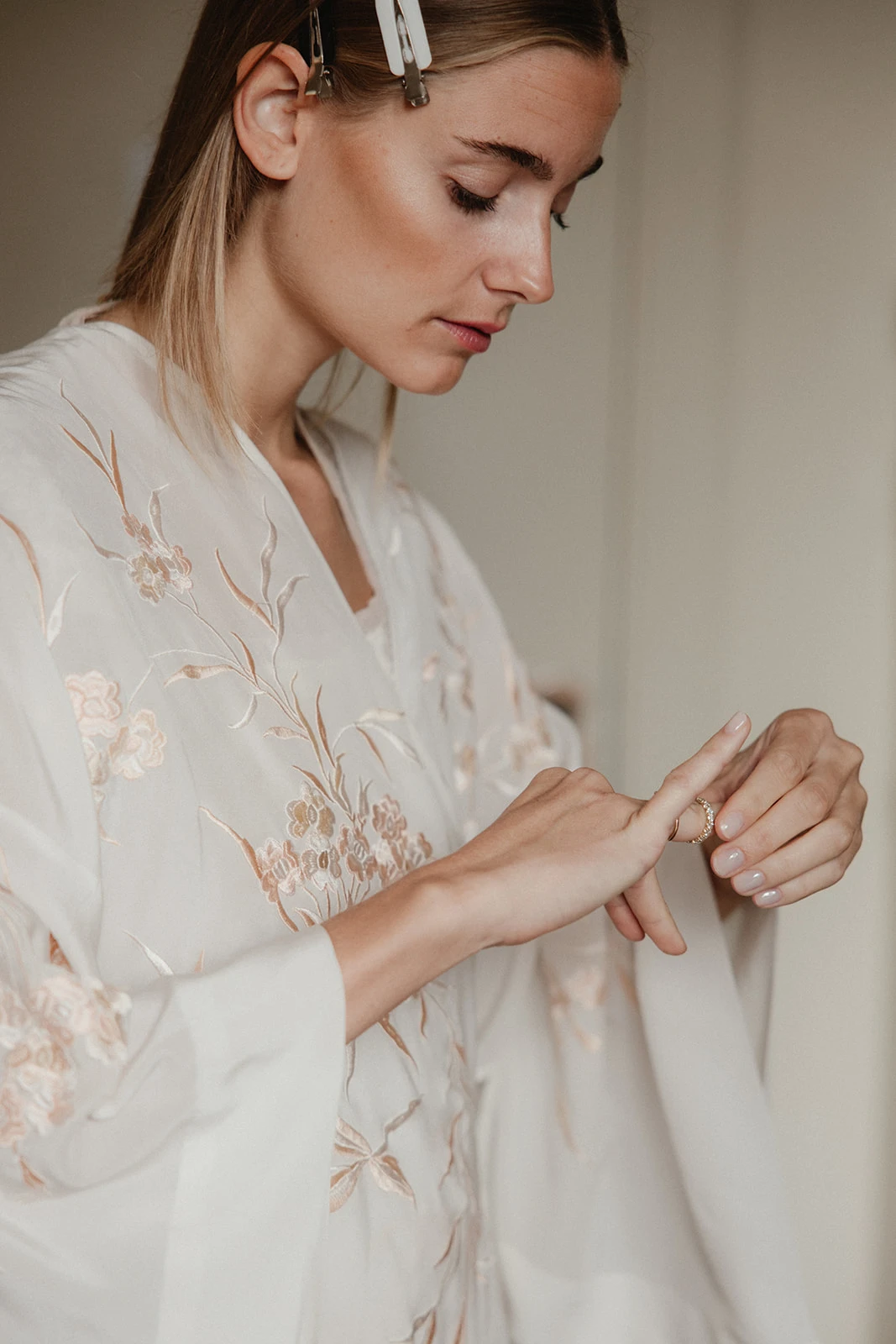 A su maquillador, Joel Bug, lo conoció gracias a Teresa Helbig, la diseñadora de su vestido. «No hizo falta ni prueba de maquillaje. Me preparé con el camisón que llevaba mi bisabuela Carmen el día de su boda y un kimono que conseguí en l’Arca».