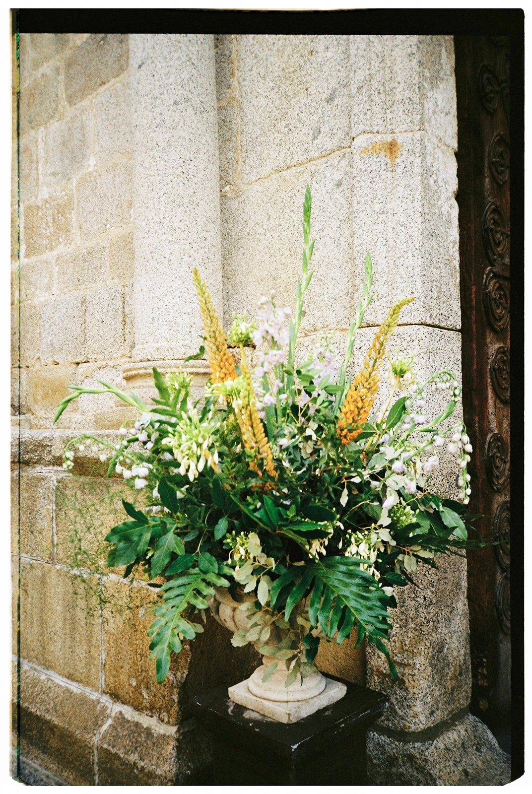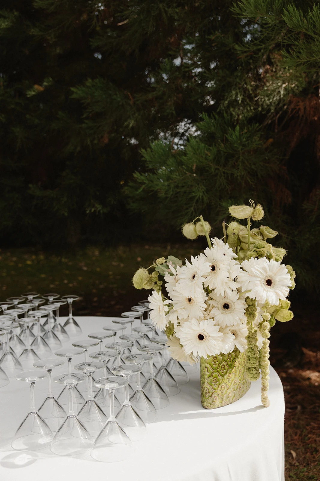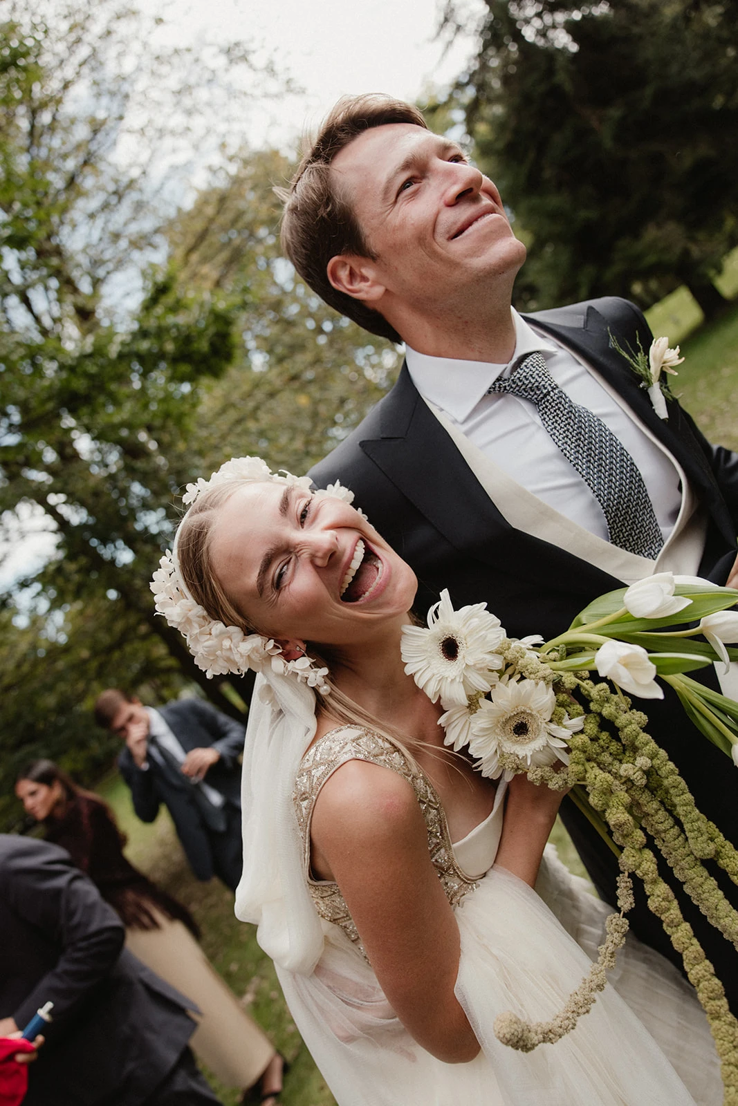 Las decisiones florales se las confió a Manuela de Gang and the Wool. «Creó mi ramo con tulipanes y gerberas blancas con centro oscuro y amaranthus».