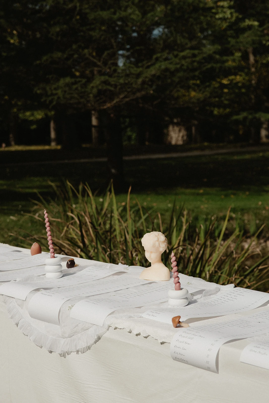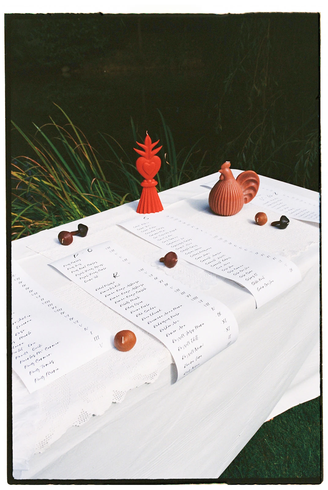 «Para la decoración queríamos conseguir una estética limpia, íntima, elegante y divertida. Compré unas velas en la cerería Subirá y las combiné con unas puntillas que estaban en casa de mi abuela».