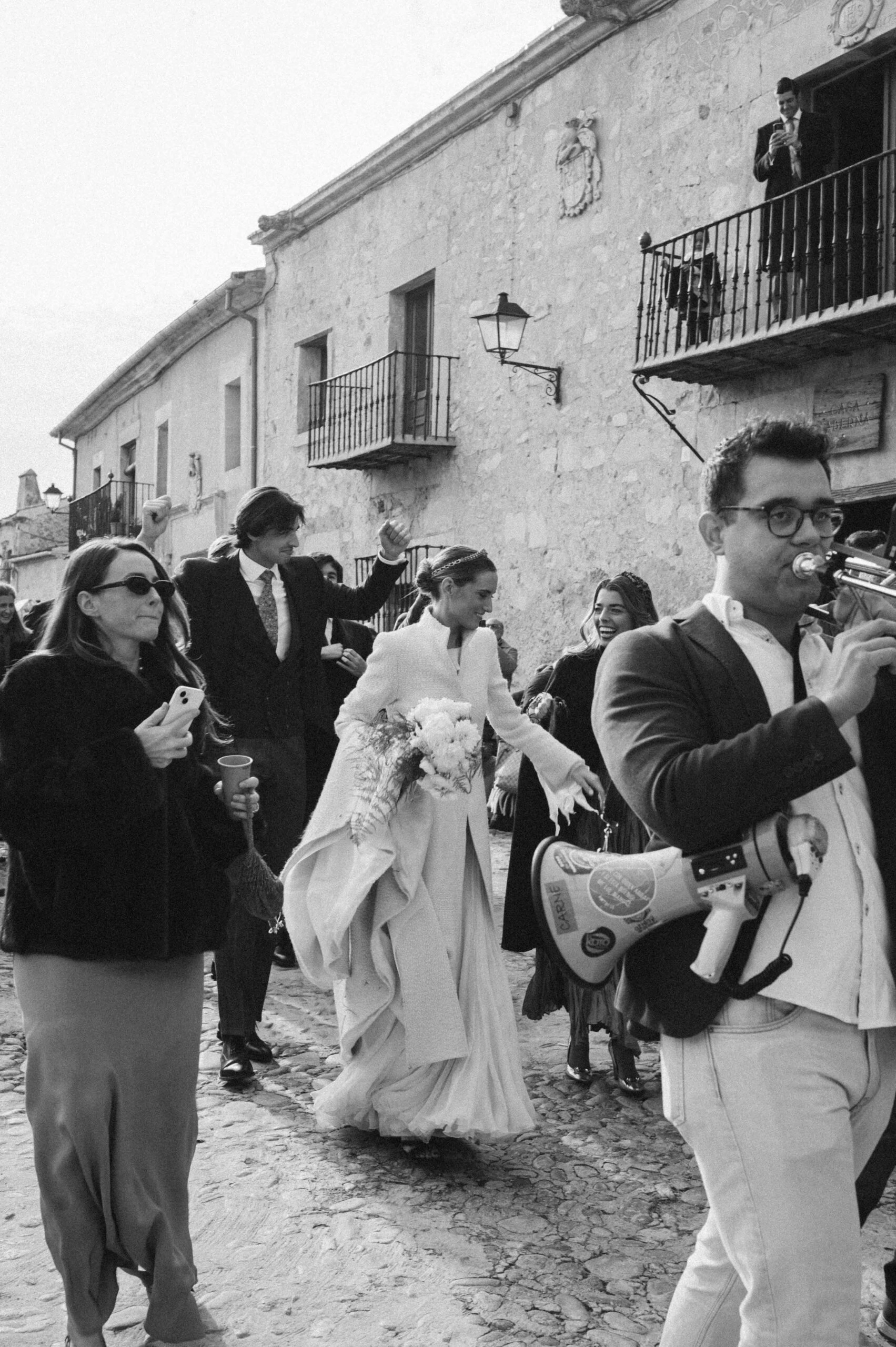 La celebración fue en tres sitios diferentes de Pedraza. «Fue increíble tomar caldo en la plaza y moverse caminando por el pueblo durante todo el día con la charanga Gurugú».