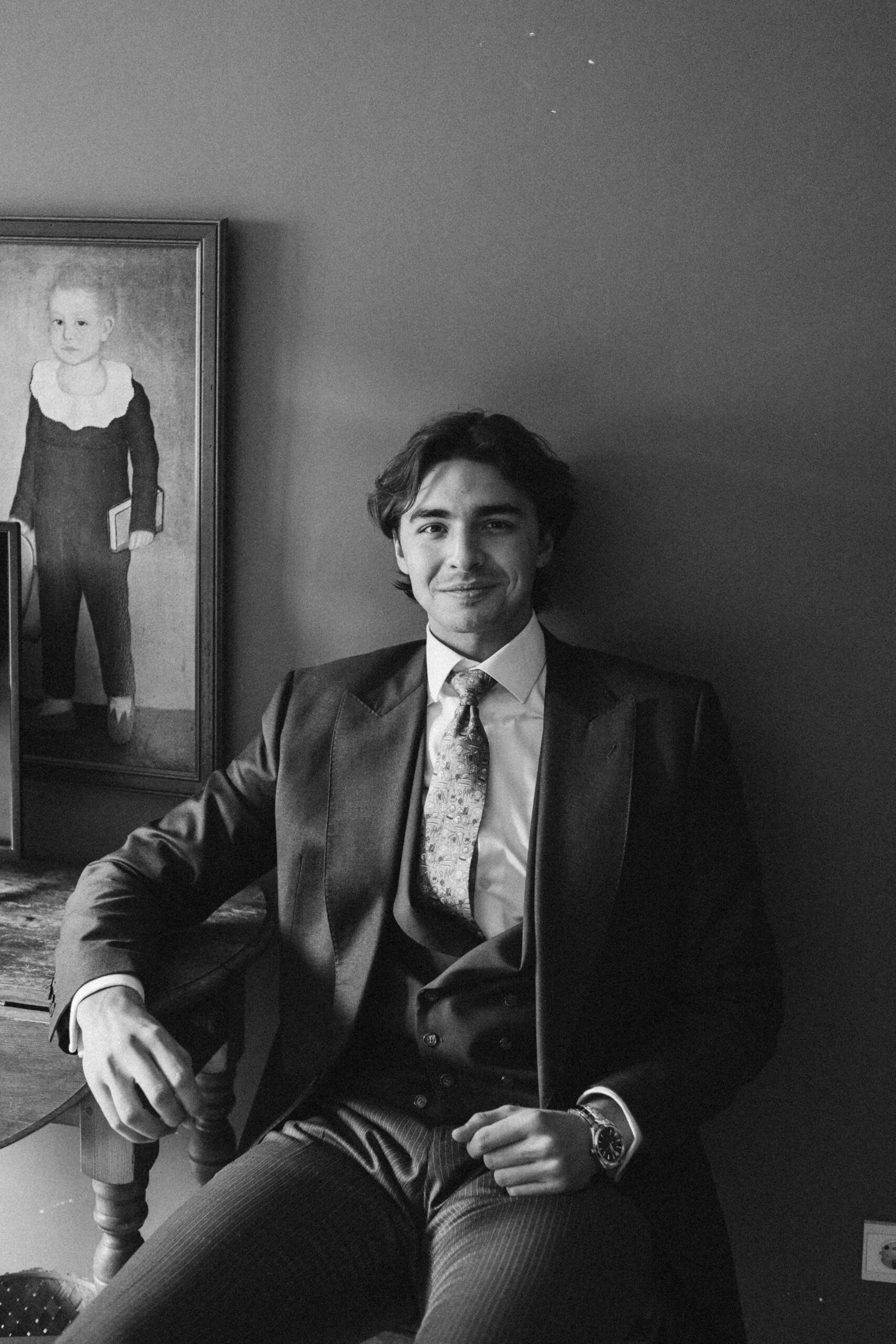 Gonzalo llevó un chaleco de Ignacio Valdés y una corbata de Liberty. Esto lo combinó con un reloj que le regalaron los padres de Alejandra el día de su pedida.
