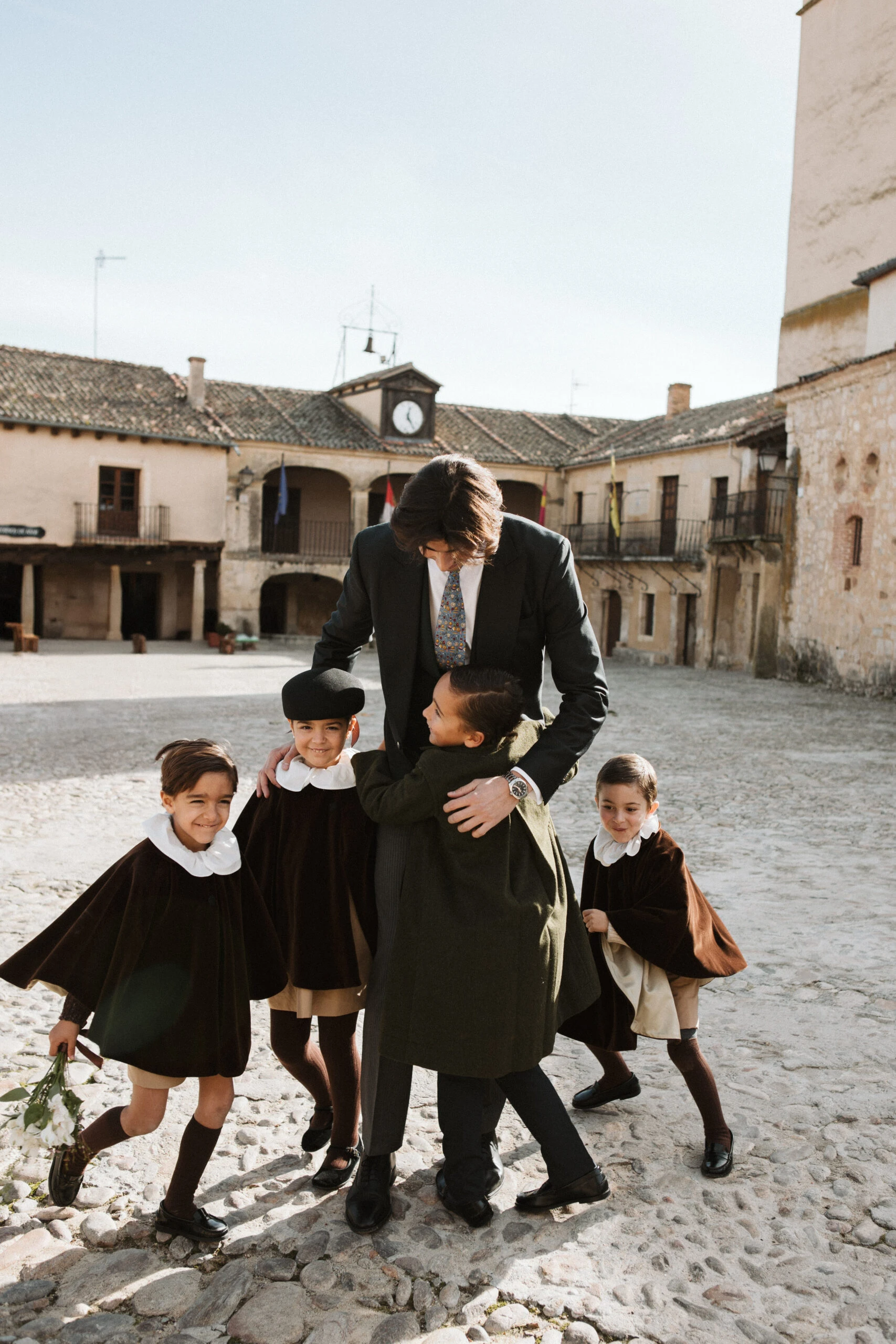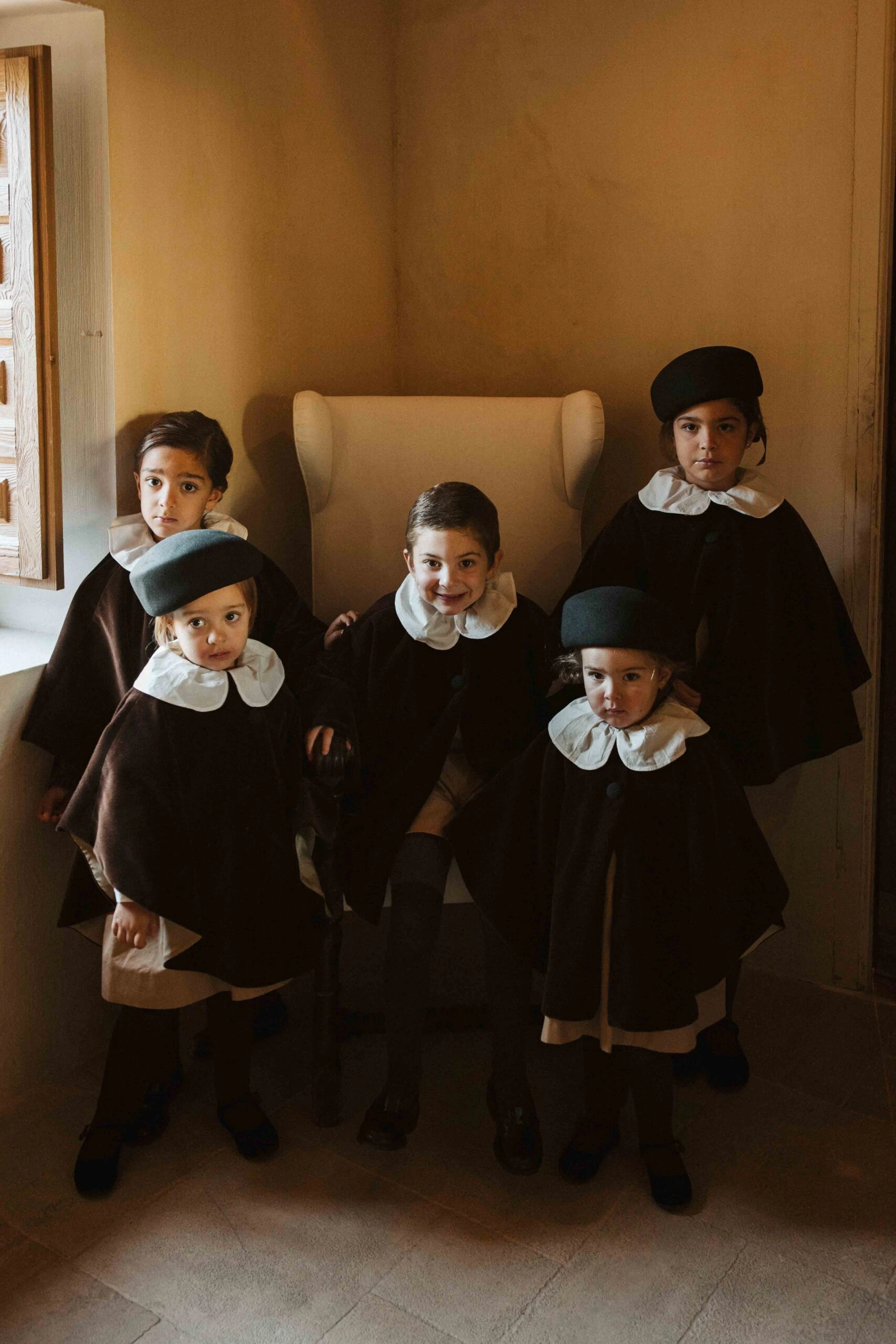 Los pajes y monaguillos, hijos de las hermanas de Gonzalo, iban con trajes y capas que diseñaron ellas mismas a medida.