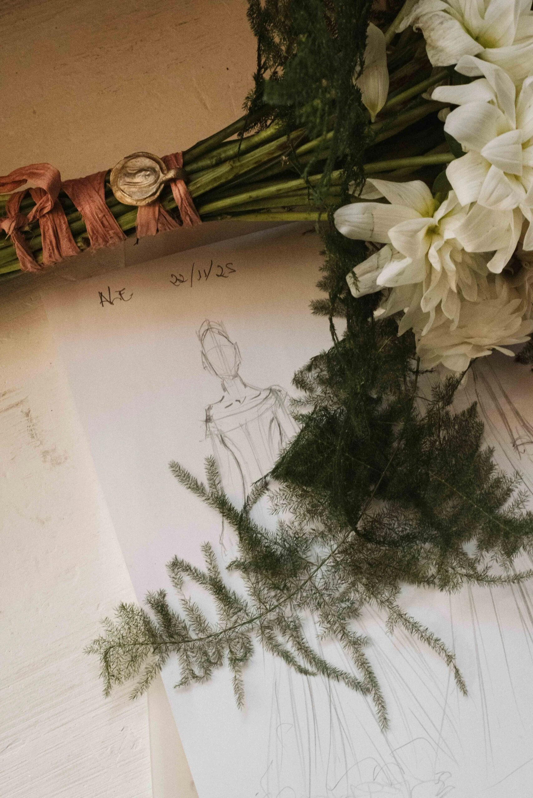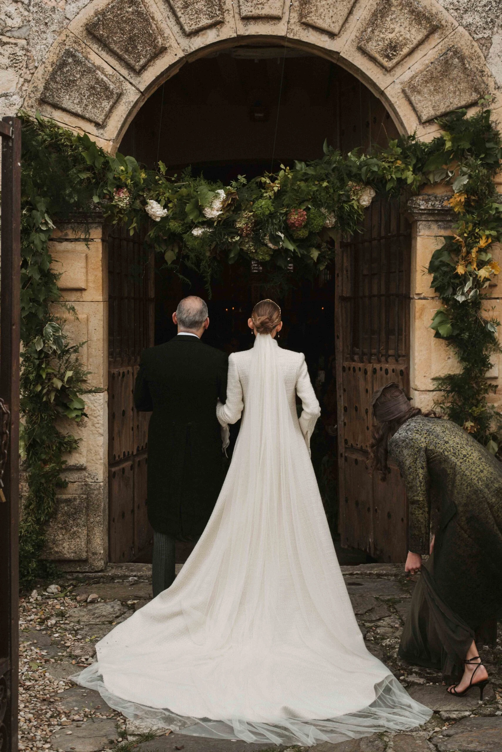 «Mi ramo lo hicieron Carlota y Paula, del Palomar de las Flores, con dalias, peonías, ranúnculos y esparraguera. Quería algo blanco y un poco salvaje y el resultado me encantó. Ellas también se encargaron del resto de las flores».