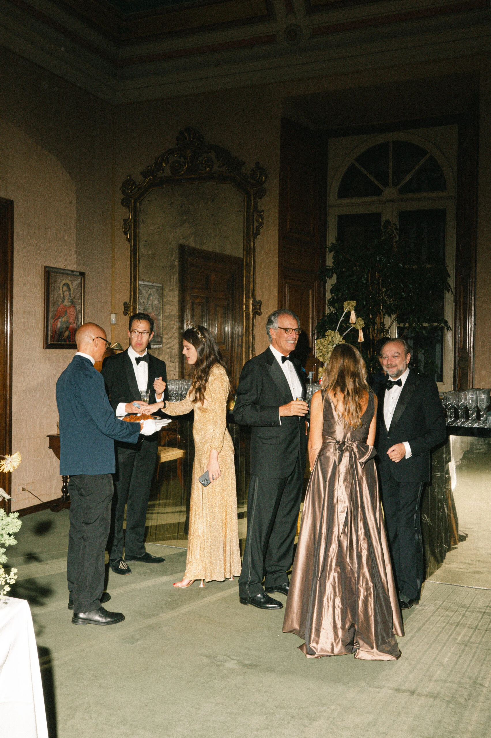 La celebración de su boda comenzó la noche del viernes 12 de septiembre: «La cena de bienvenida tuvo lugar en Palazzo Aragona Gonzaga, la casa de mi tío en Roma. No es un lugar para eventos, pero ha sido utilizado anteriormente como set de rodaje para rodar The Young Pope».