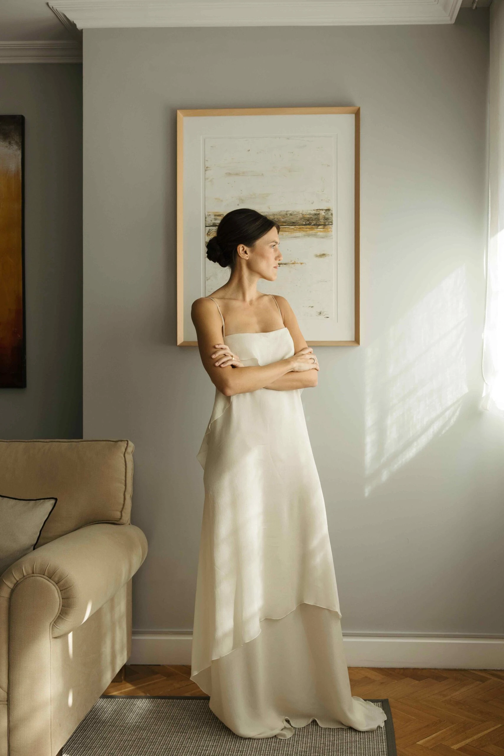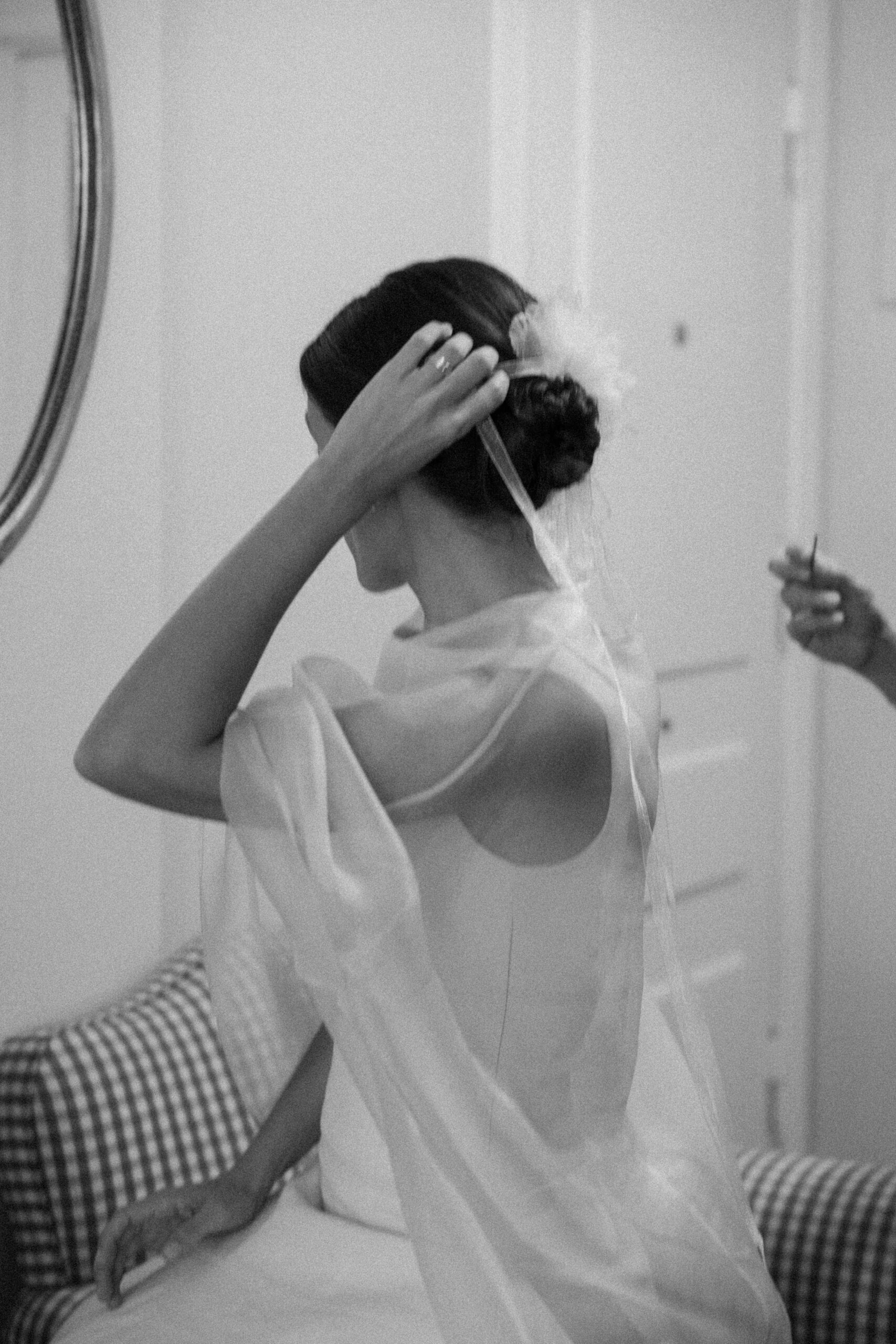 Gloria se preparó con el camisón Cas de Dreaming Habits x Casilda se casa y Raquel Serrano y Natalia Méndez se encargaron del maquillaje y peluquería: «Las flores de organza del tocado me las hizo Isa de Petrova».