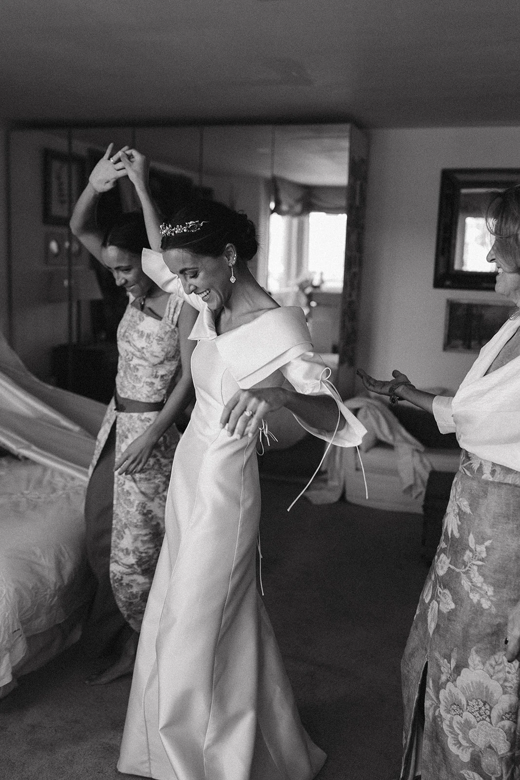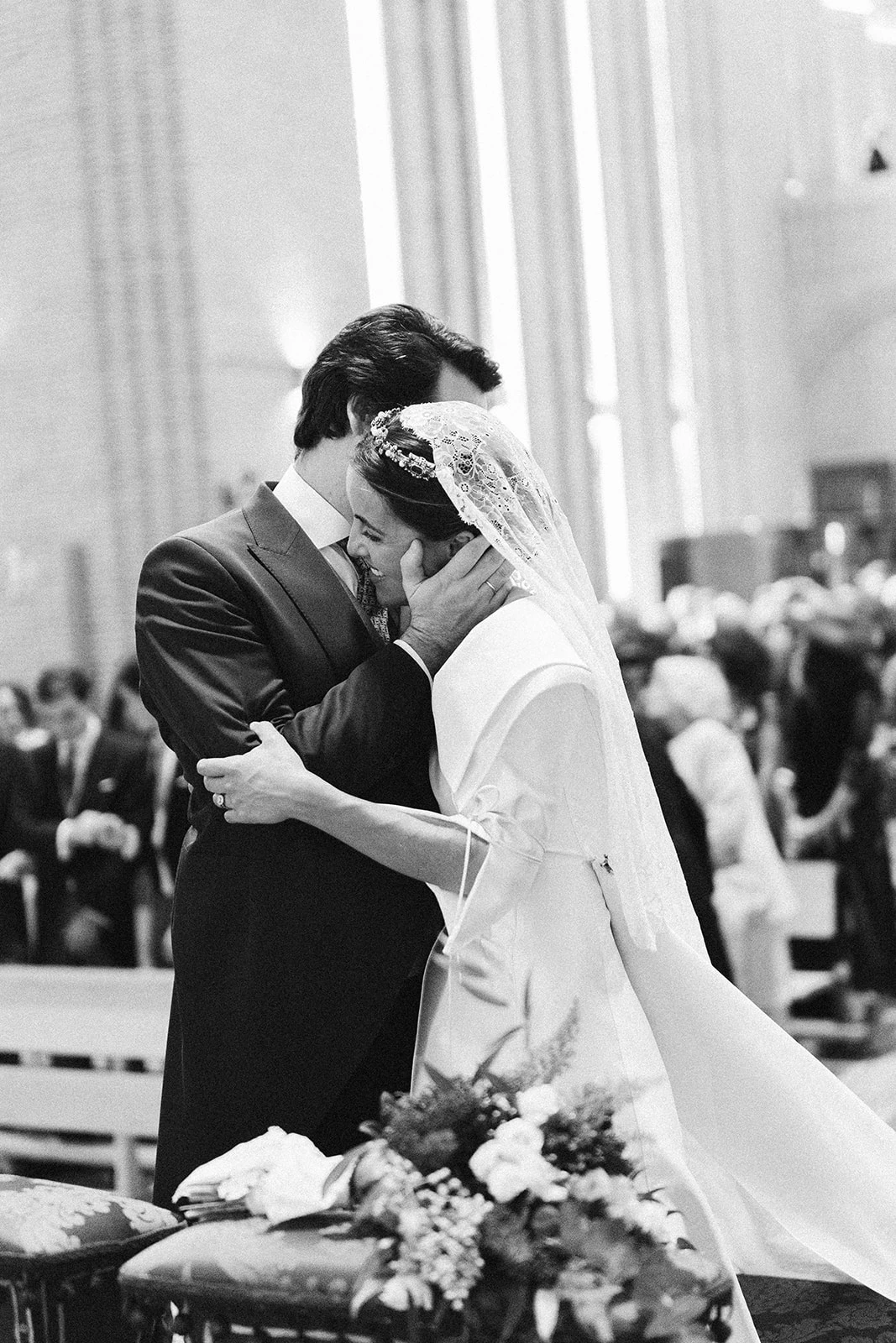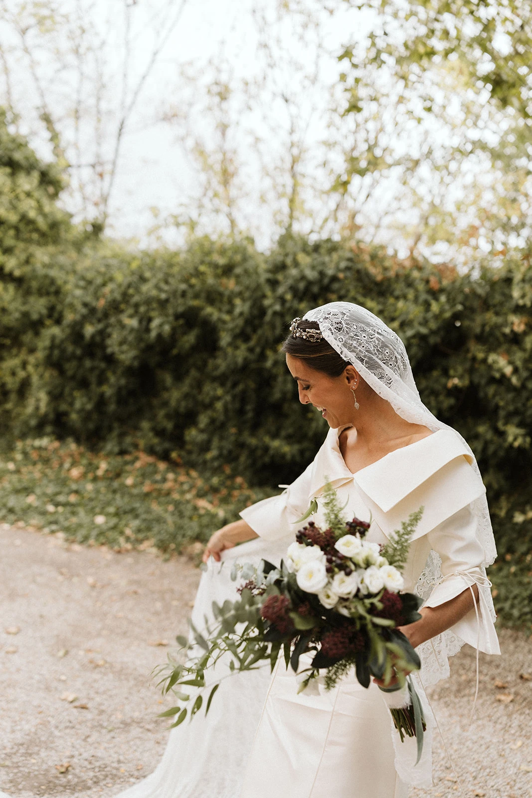 «Quería casarme con el vestido de novia de mi madre. Estoy muy unida a ella y era una forma de reconocer el papel fundamental que ha tenido en mi vida. Como no pudimos arreglarlo, decidimos acudir a Inés Martín Alcalde, a la que le encanta arreglar joyas antiguas. Lo replicamos haciendo algún cambio y cuidando detalles como la organza de las mangas y el cuello».