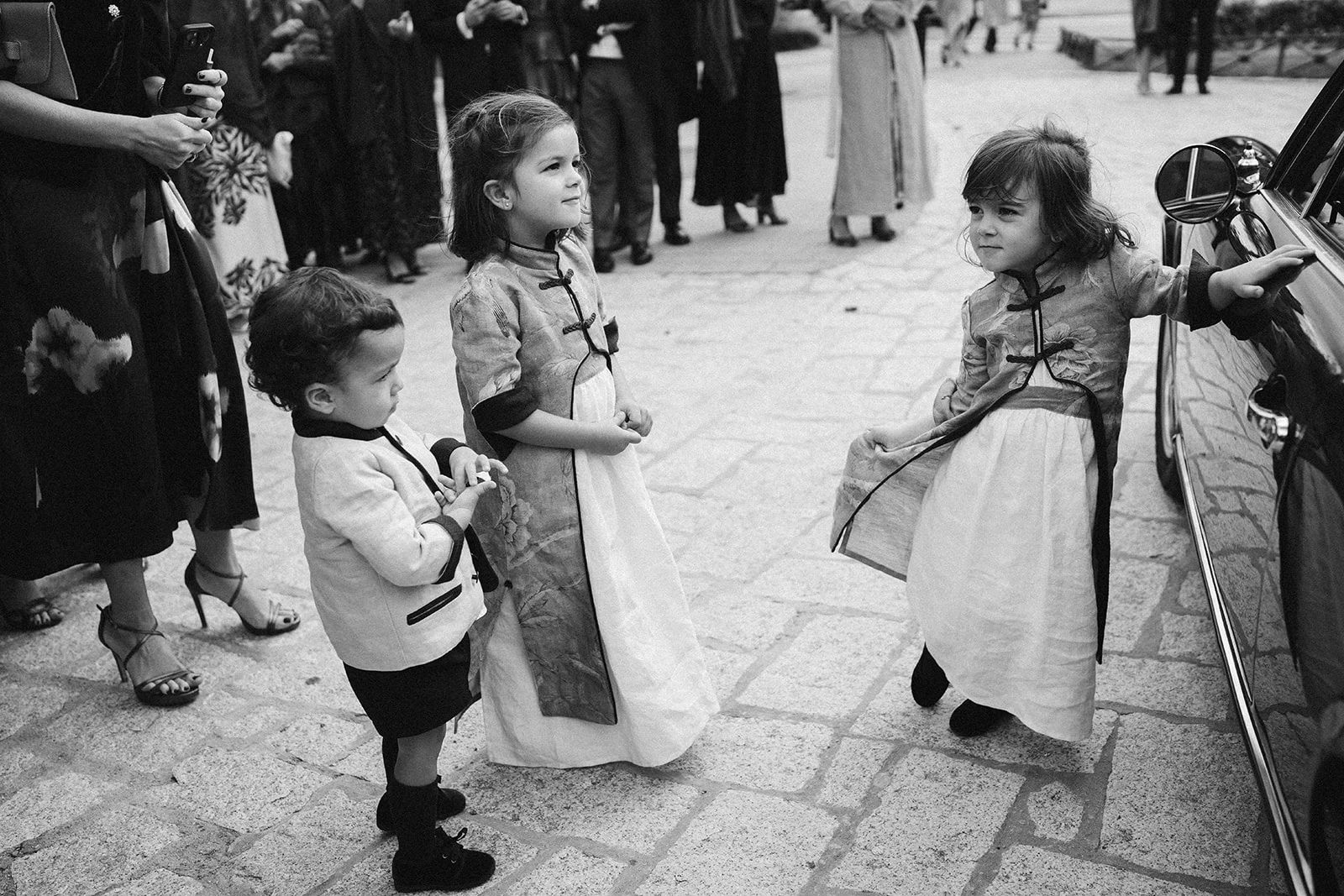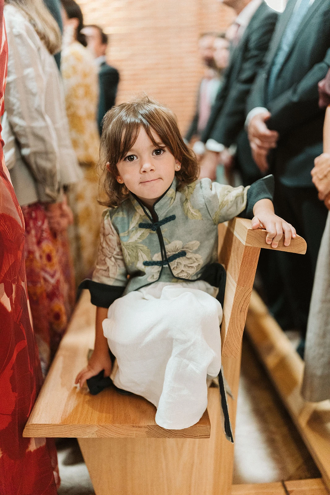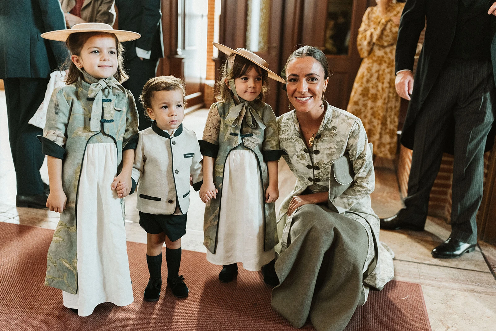 «Los pajes eran mis sobrinos. A las niñas les diseñé unos delantales y unas chaquetas largas de Vicalo con unos sombreritos de mimbre atados al cuello. Para el paje, una austriaca de lino».