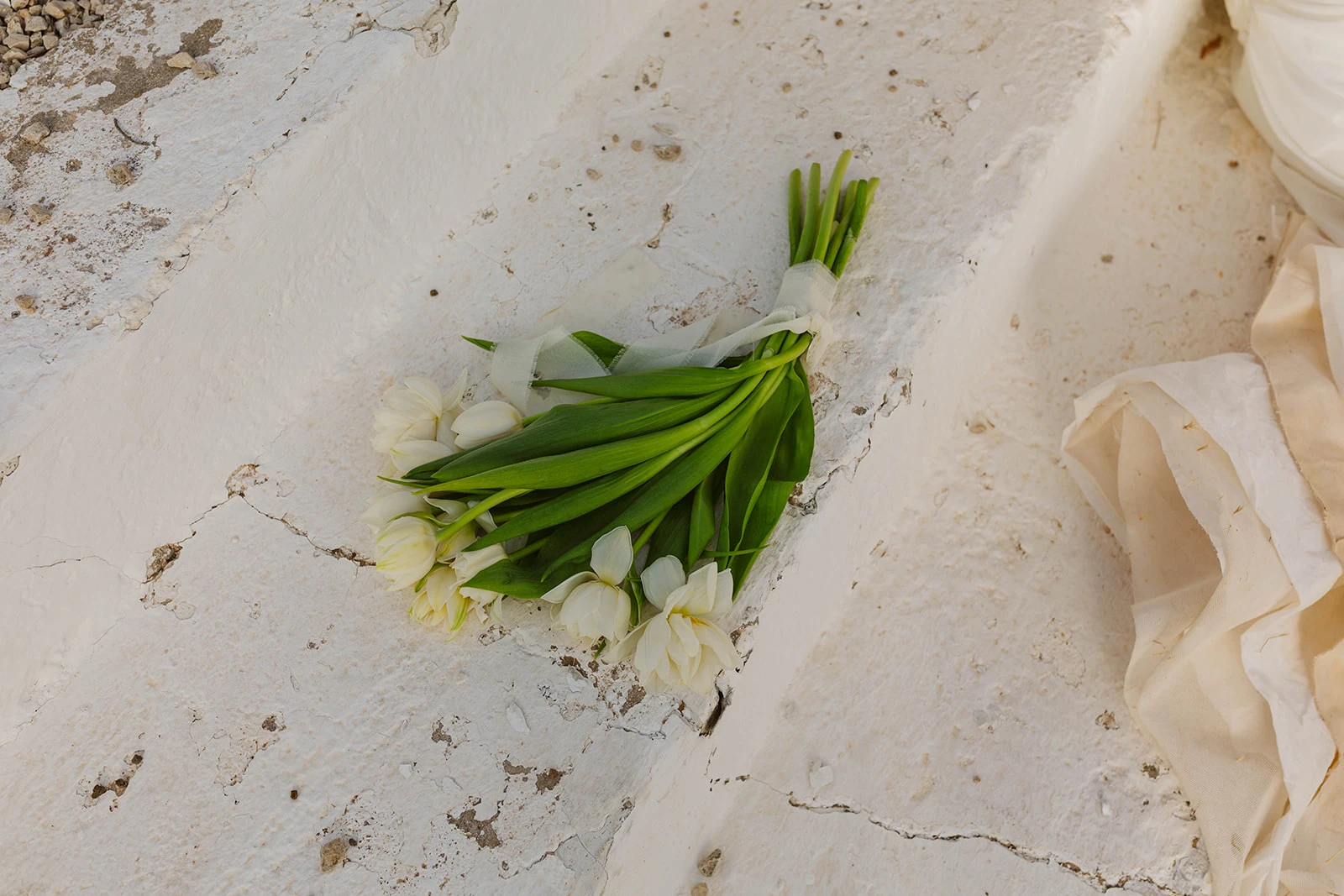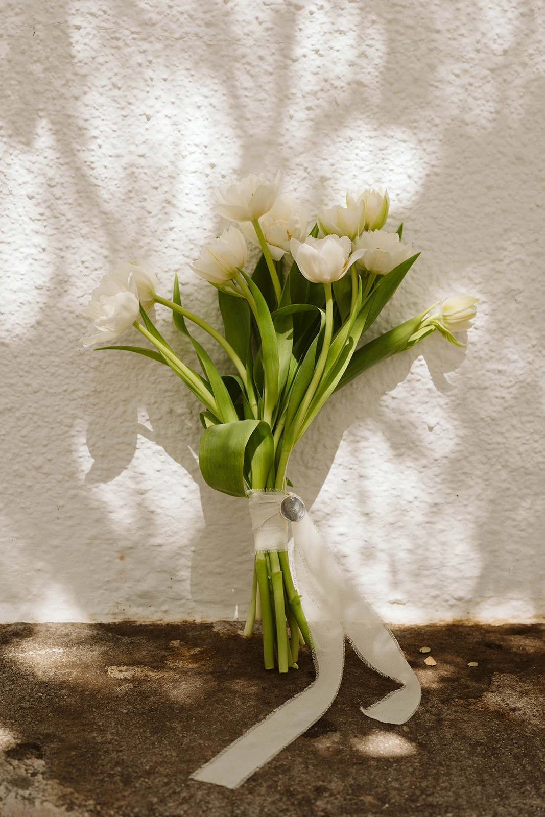 «El ramo era de tulipanes blancos y mis hermanos pusieron en una cinta la medalla de la Virgen que custodia la casa».