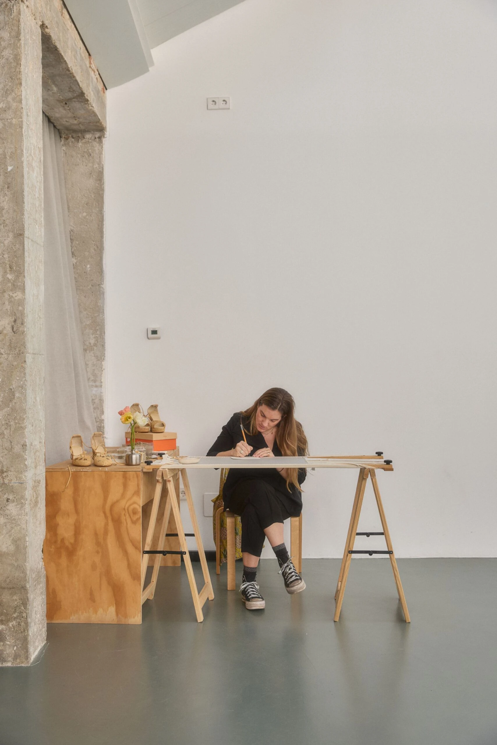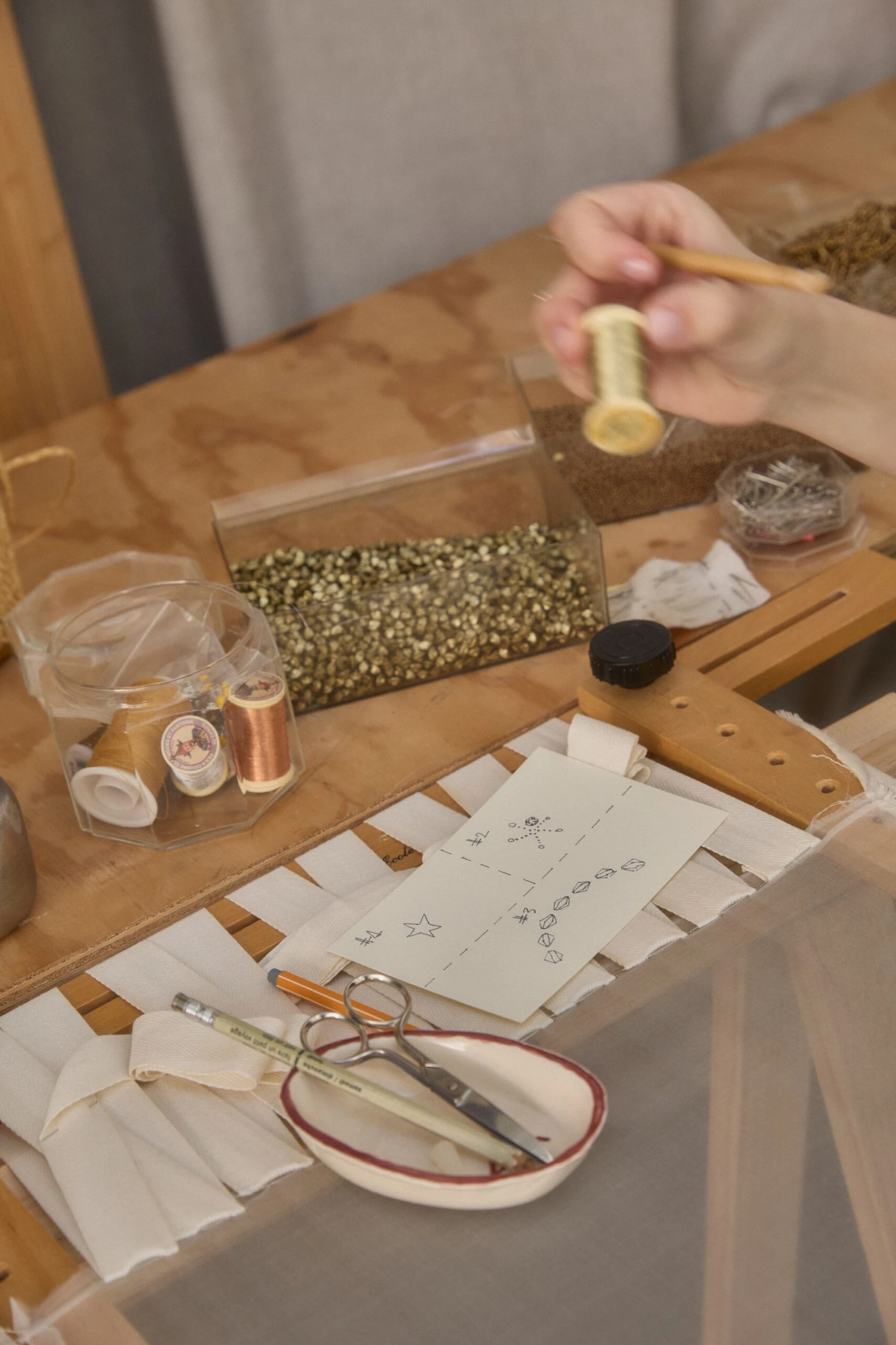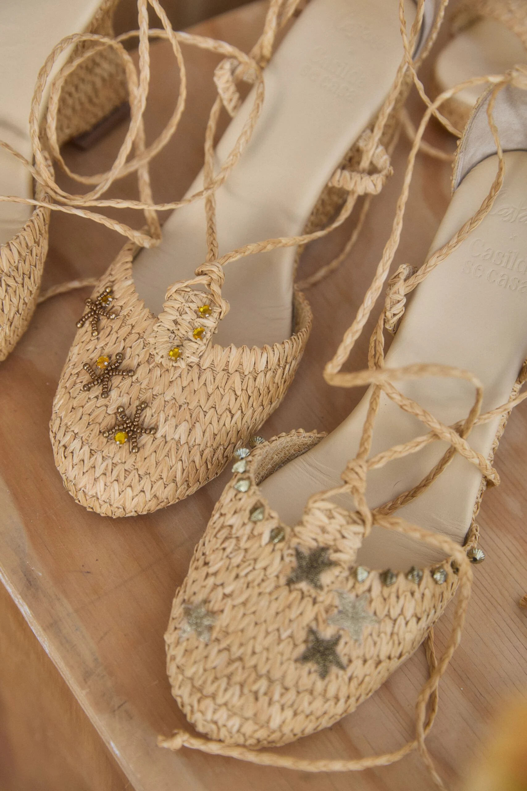 Para evitar peleas entre hermanas le pedimos a la bordadora Victoria Torres, de Luneville, que personalizara en directo cada zapato.