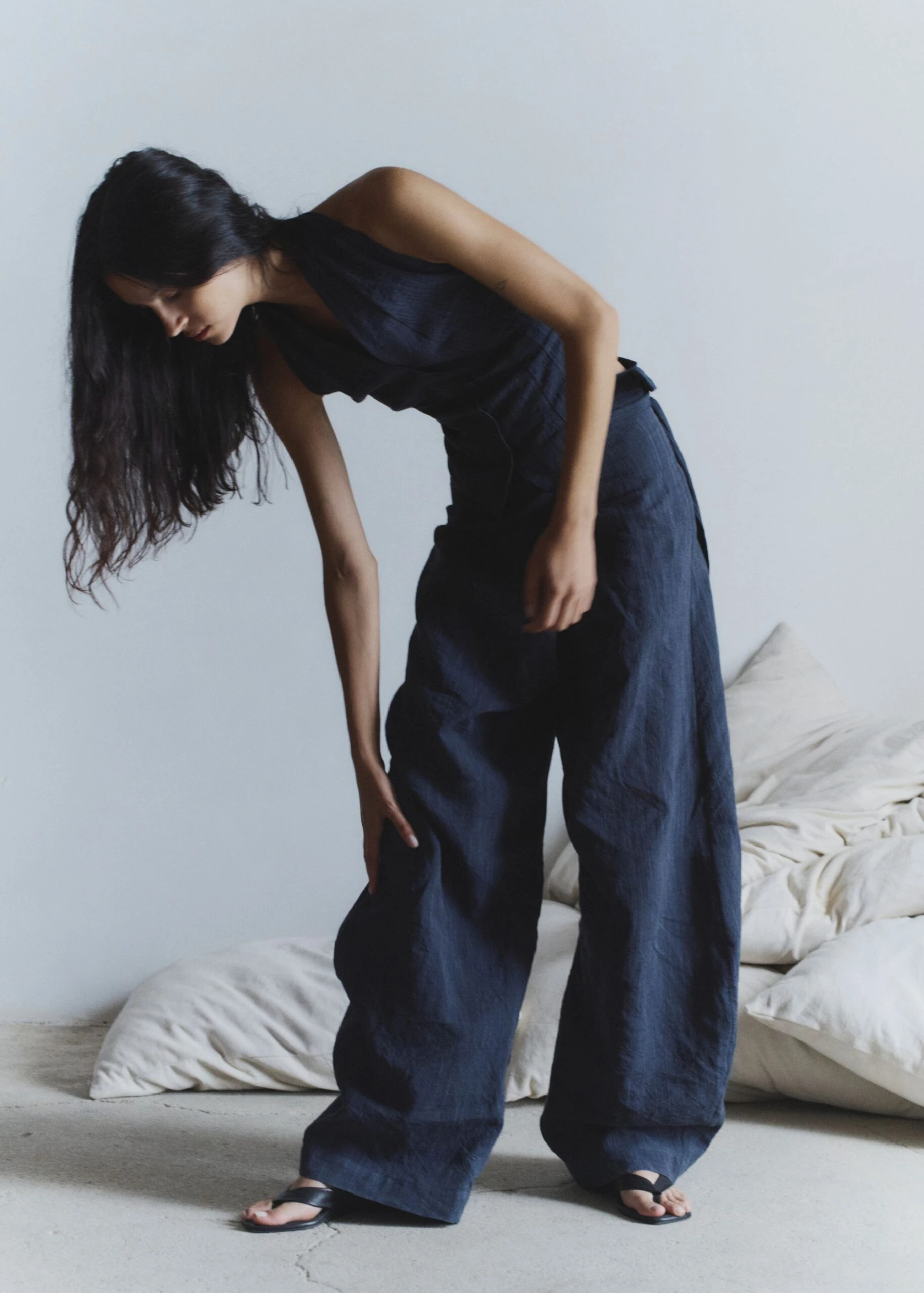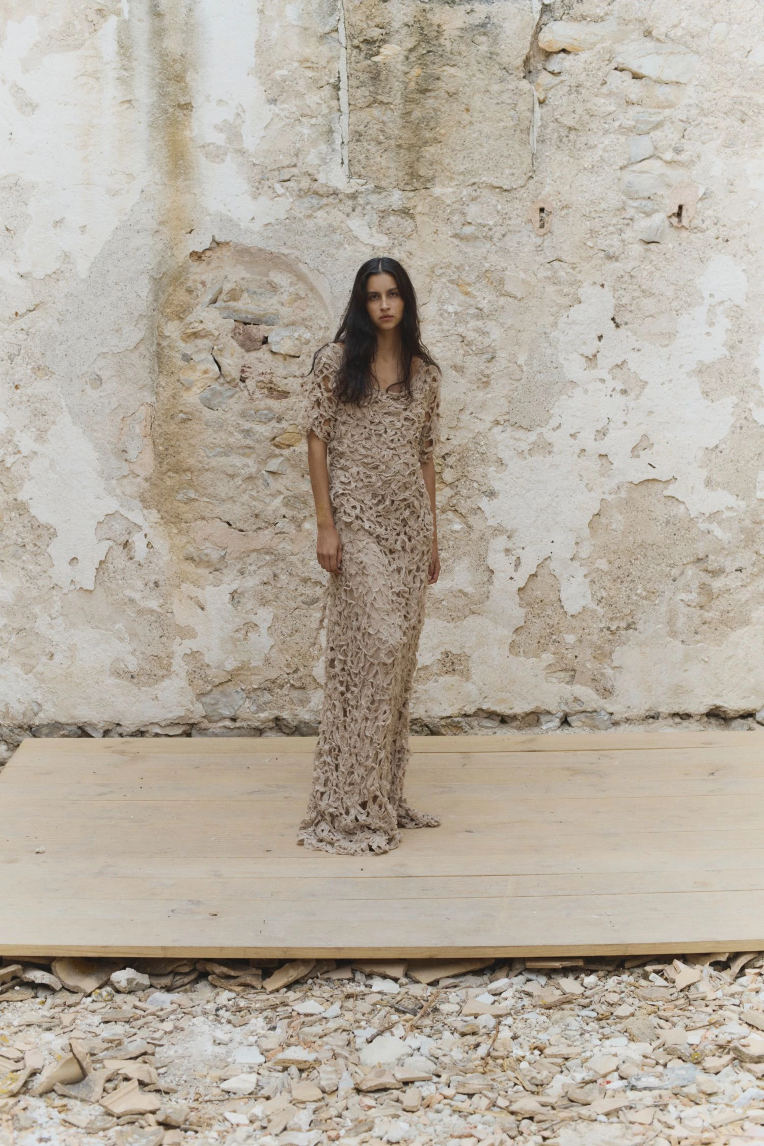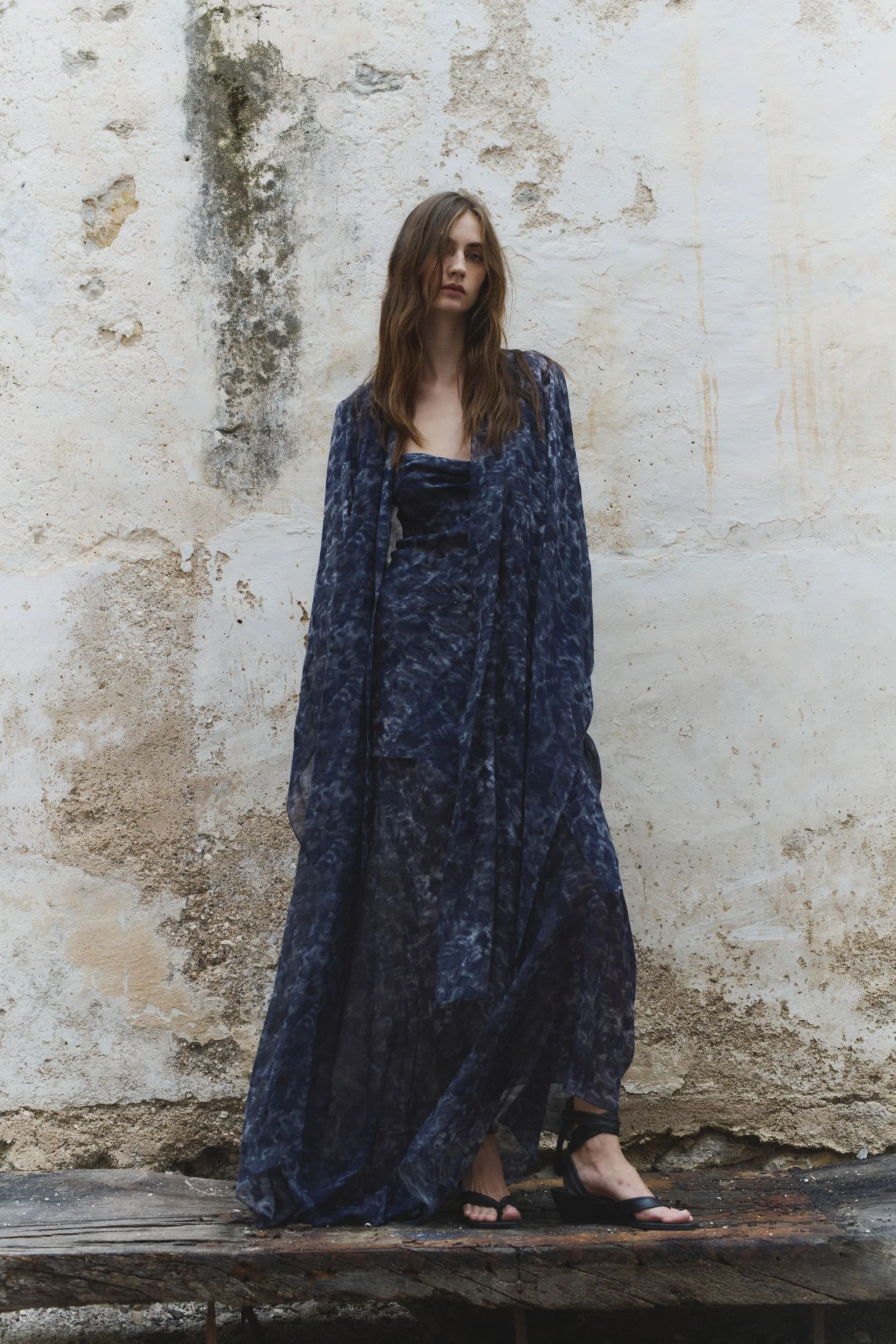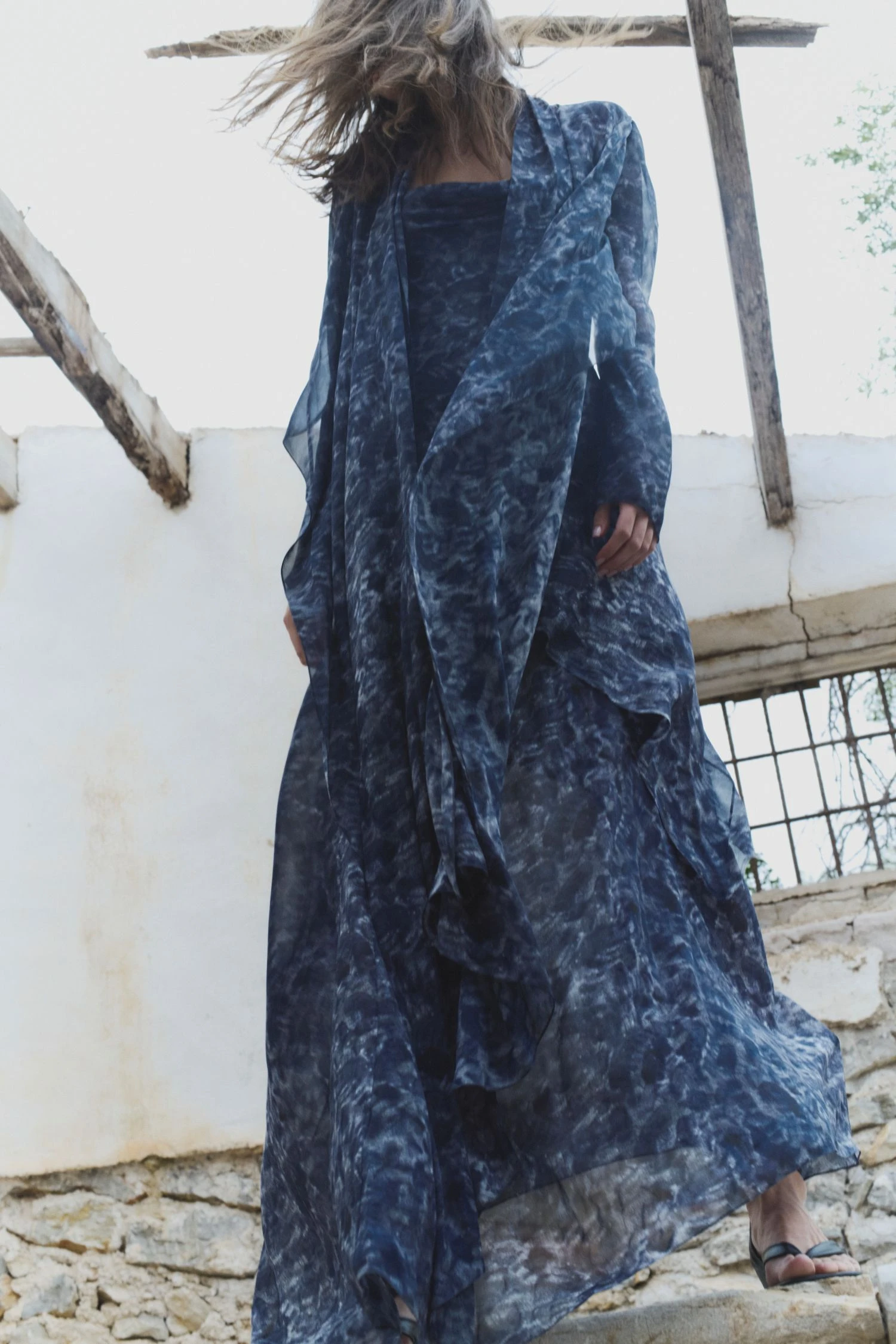 Construida a partir de tejidos con texturas, acabados maltinto, estampados de peces, verdes dorados y tonos coral que evocan un universo marino en la tierra, la paleta de colores fluye entre tonos vivos y cálidos: amarillos quemados, verdes tostados y ese negro de una noche de verano. Por su parte, las siluetas hablan de una feminidad libre, sugerente y natural: vestidos fluidos, tejidos con transparencias, cinturas marcadas y pantalones bombachos.
