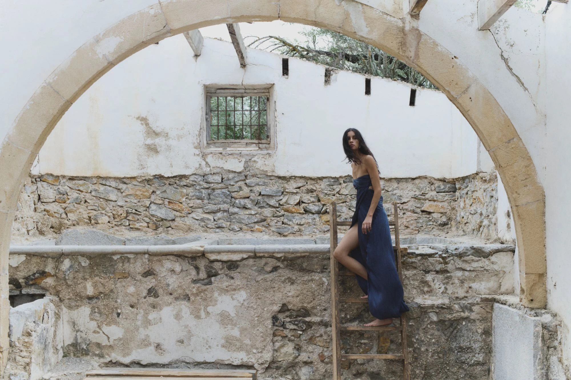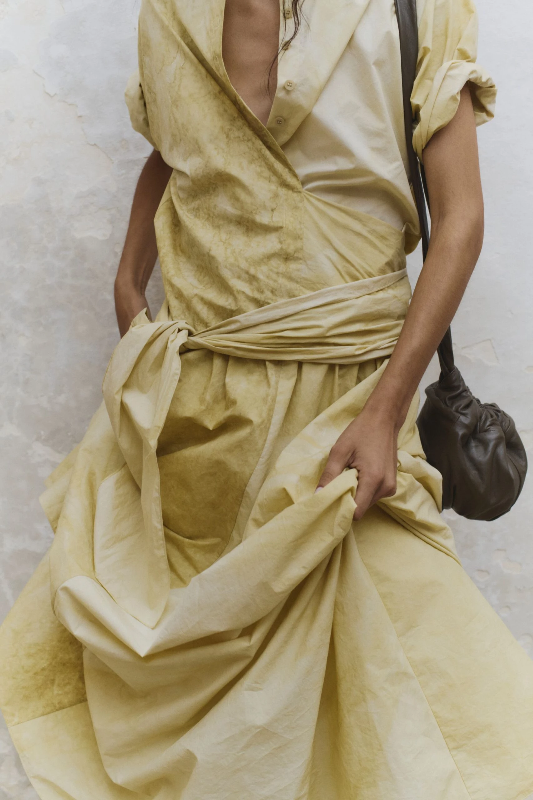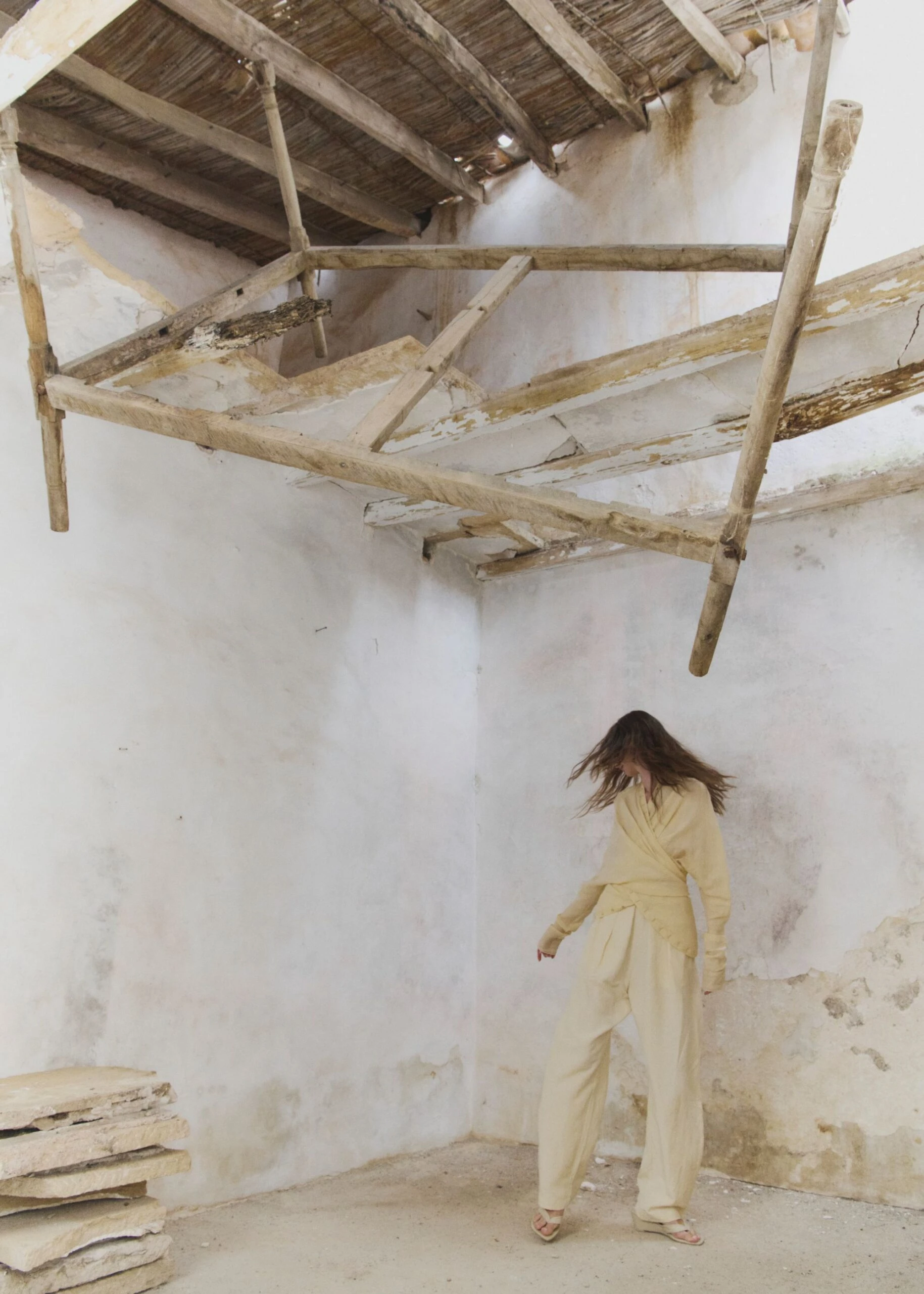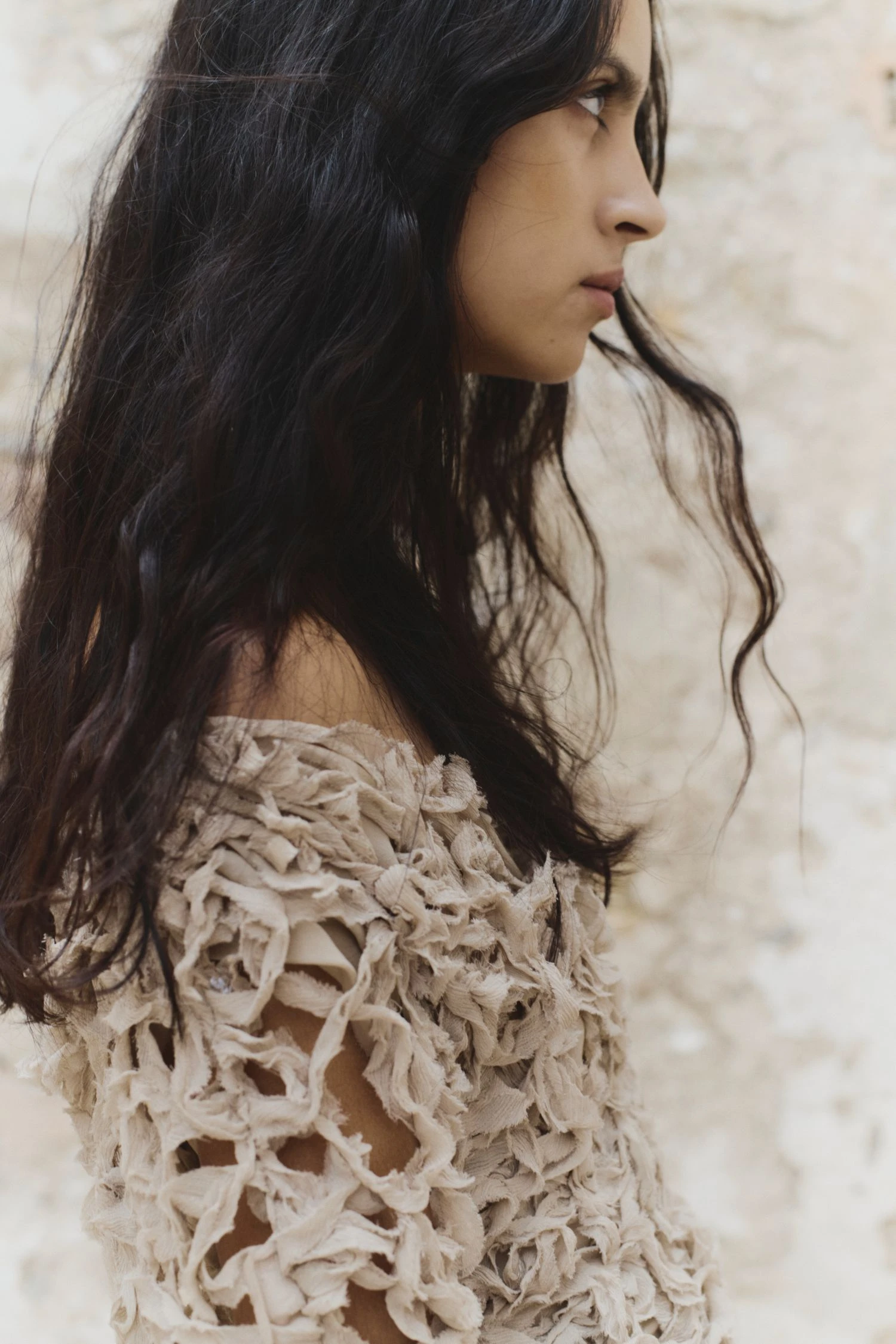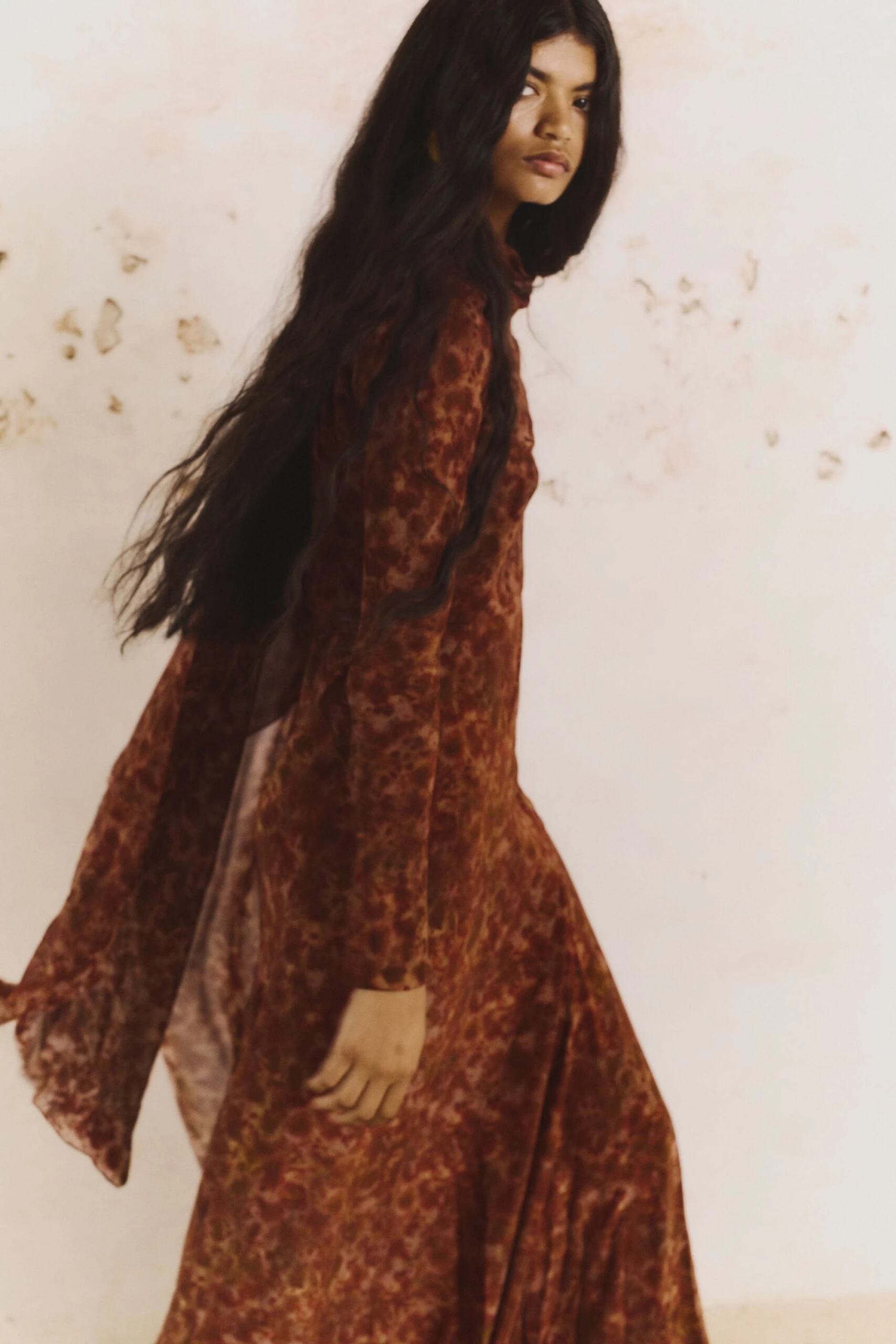 Construida a partir de tejidos con texturas, acabados maltinto, estampados de peces, verdes dorados y tonos coral que evocan un universo marino en la tierra, la paleta de colores fluye entre tonos vivos y cálidos: amarillos quemados, verdes tostados y ese negro de una noche de verano. Por su parte, las siluetas hablan de una feminidad libre, sugerente y natural: vestidos fluidos, tejidos con transparencias, cinturas marcadas y pantalones bombachos.