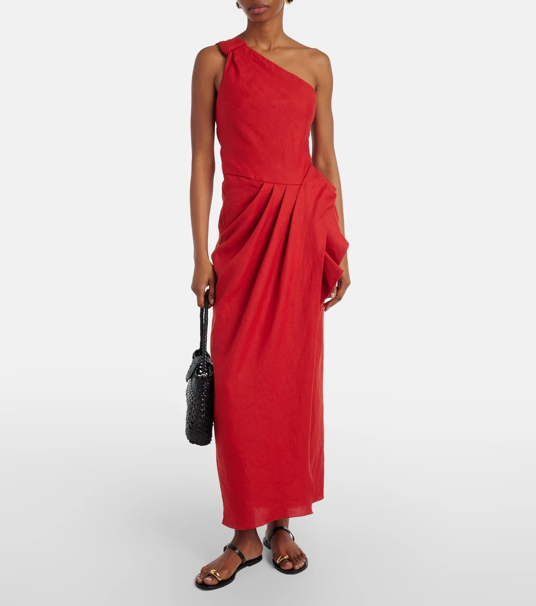Otra opción de fiesta es este de Johanna Ortiz (1.995€). Confeccionado con lino transpirable en una silueta asimétrica de un solo hombro y espalda descubierta.