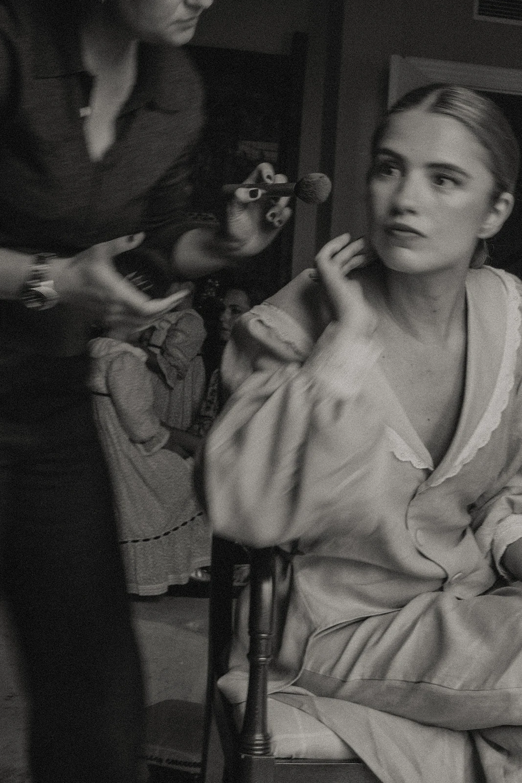 Paloma se preparó en casa con su familia con un pijama que diseñó junto a Serên Collection: «Me maquilló Teresa Trinidad Makeup. Es amiga mía y una experta en ponerte guapa de manera natural, cosa muy importante para mí ya que no suelo maquillarme mucho. De la peluquería se encargó Pablo Alcántara, única persona a la que le dejo tocar mi pelo porque tiene unas manos de oro».
