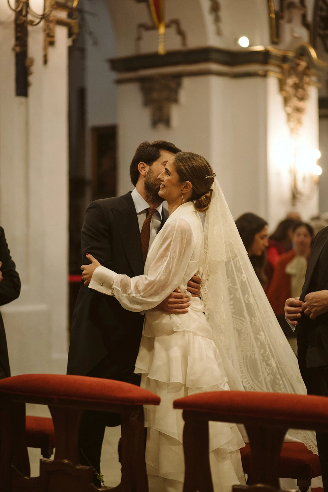 La ceremonia tuvo lugar en la Iglesia de San Francisco: «De la decoración floral se encargó Andaluflor. Quería guirnaldas en la puerta — algo muy verde, orgánico y nada estructurado — y lo hicieron aún más bonito de lo que podía imaginar».