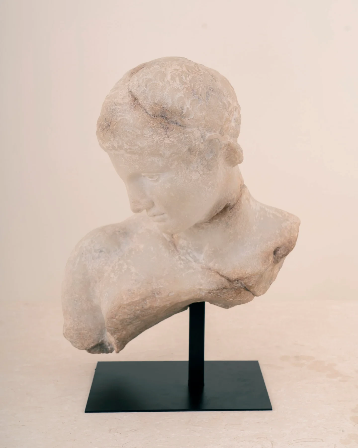 Si lo que quieres es algo más de decoración, este busto de inspiración mitológica griega es perfecto. Fabricado en composite blanco y base de hierro negro.