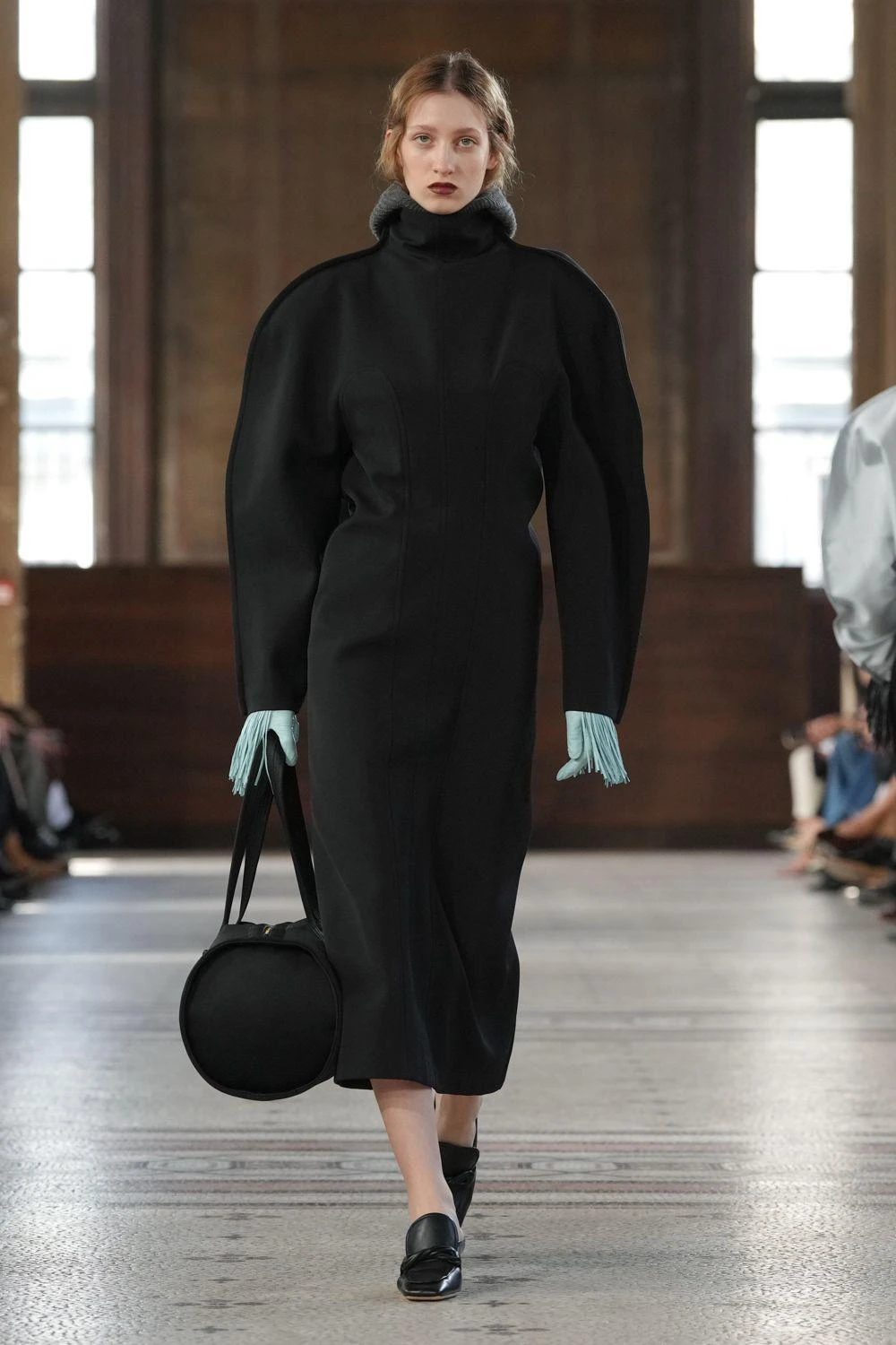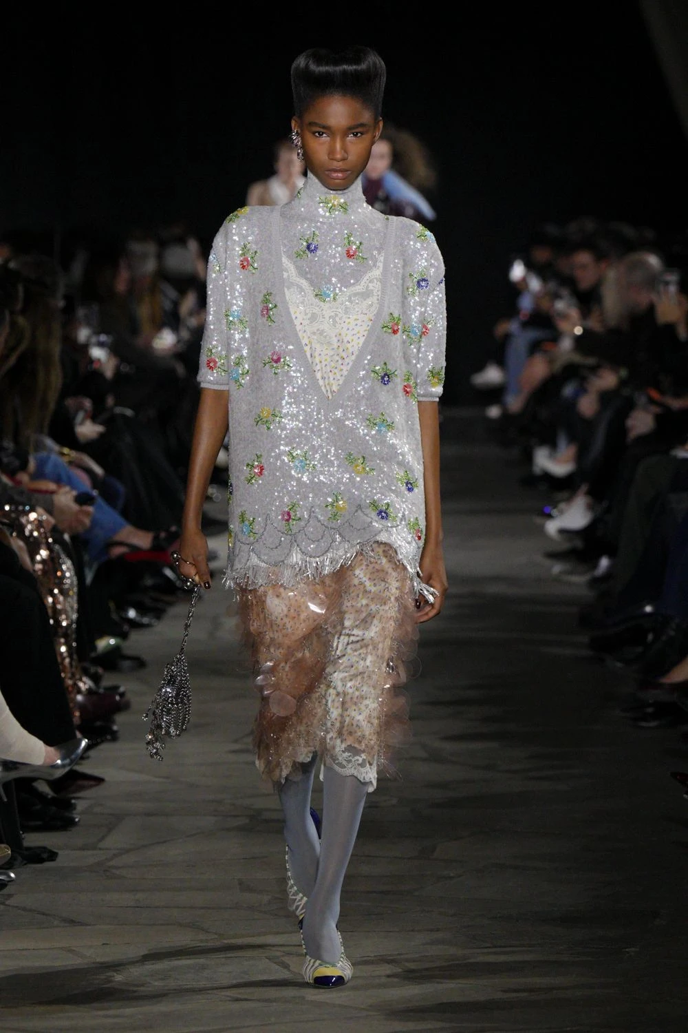 De este look del desfile de Rabanne, las medias azules.