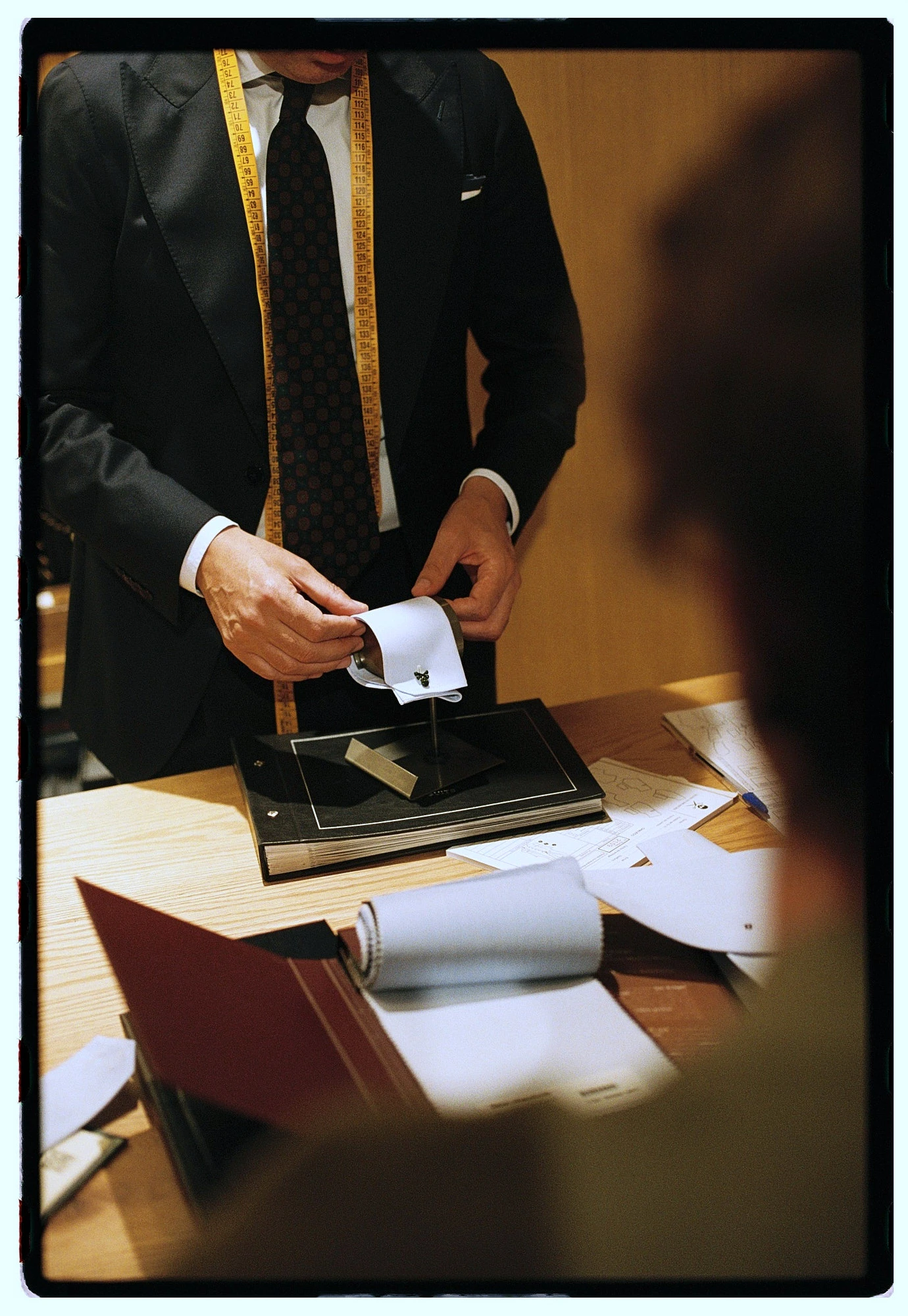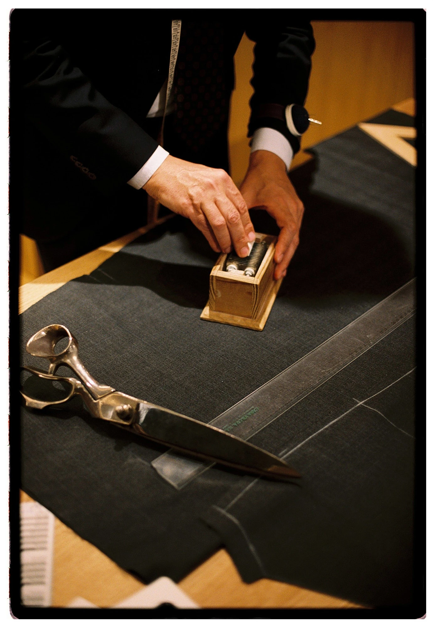El proceso empieza eligiendo el tejido, que es la base de todo. No solo es cuestión de estética, detrás hay una selección muy cuidada de lanas con distintos gramajes según la estación y la estructura que se quiera conseguir. Hay telas con mayor torsión del hilo que aportan resistencia, otras más abiertas que ayudan a la transpirabilidad e incluso mezclas con fibras elásticas para una mayor comodidad. Elegir bien no solo influye en la caída, sino también en cómo responde el traje al movimiento, a las horas de uso y a la forma del cuerpo.
