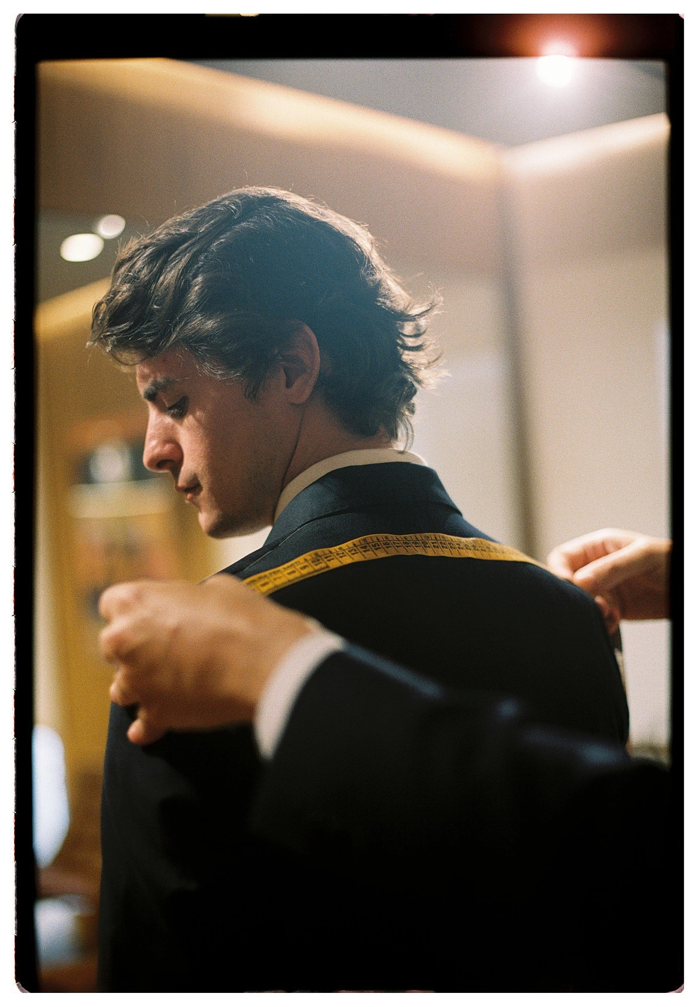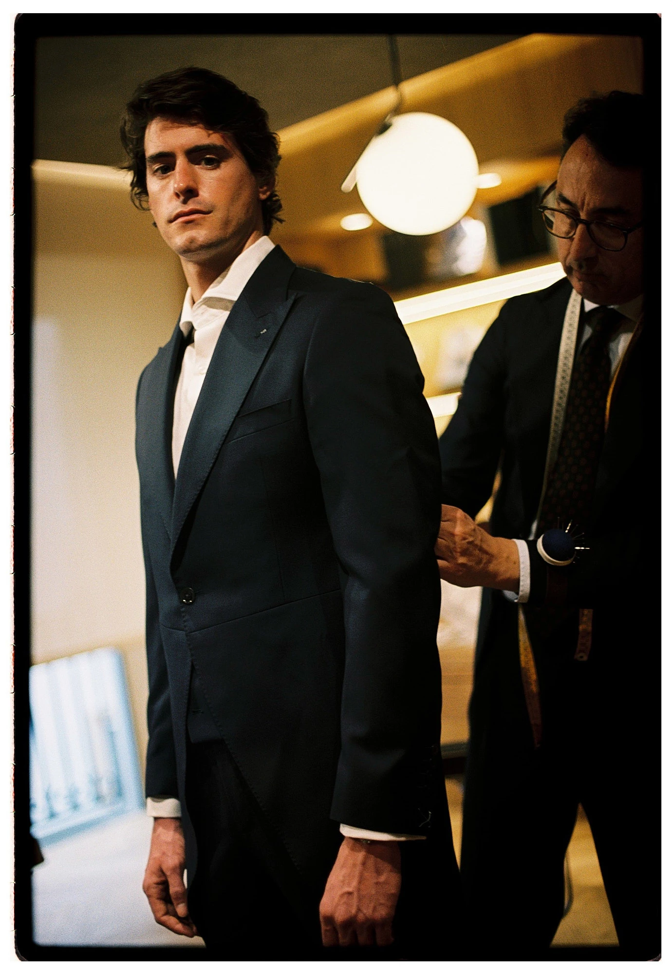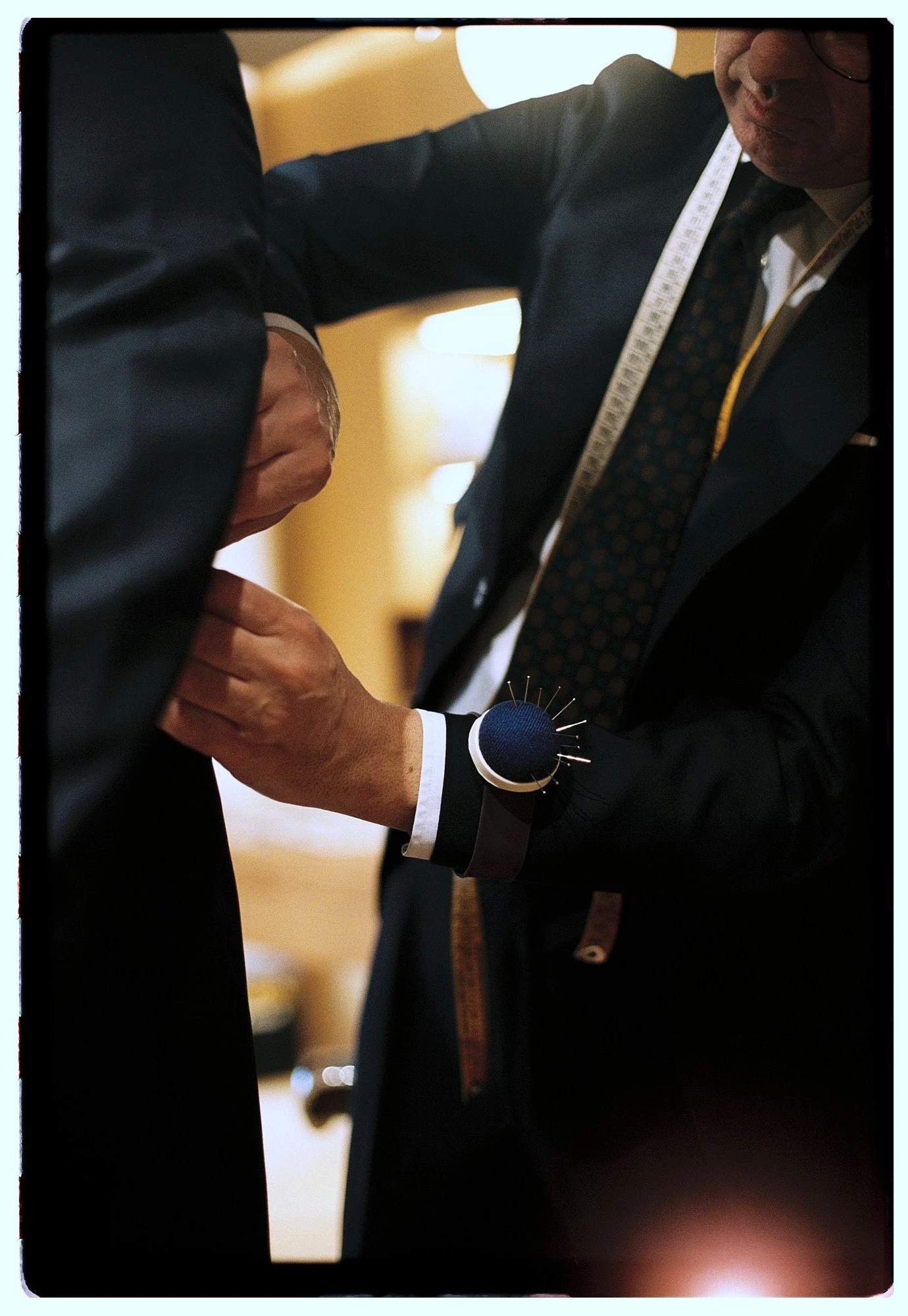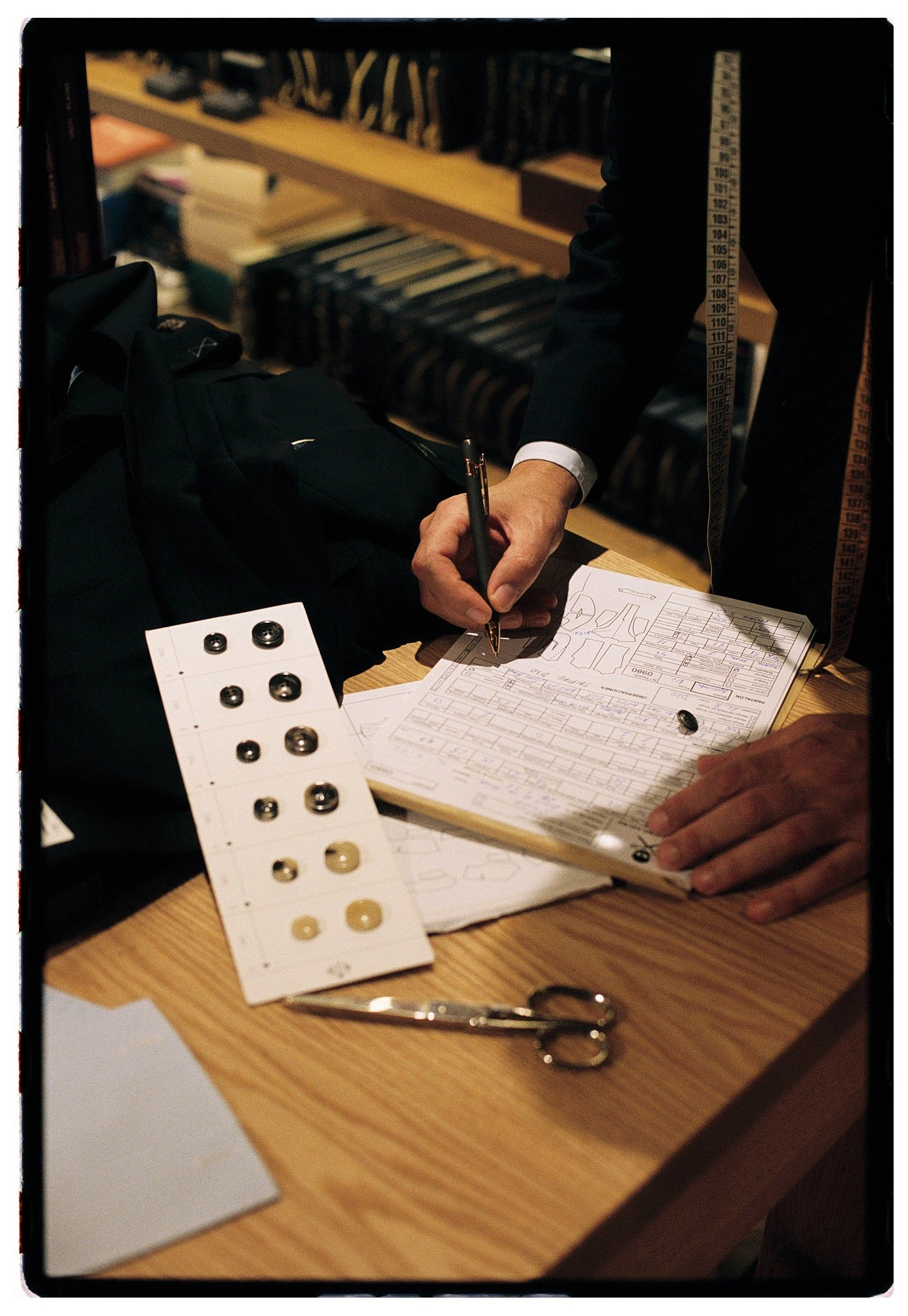 Las pruebas — esa primera vez en la que todo está “a medio hacer” y cuesta imaginar el resultado final — también tienen su historia. No son solo para ajustar largos o anchos, sino para corregir la postura, la caída de la espalda, el giro de la manga… Y luego están los detalles — el forro, los botones, el tipo de solapa — pequeñas decisiones que terminan por definir el conjunto.