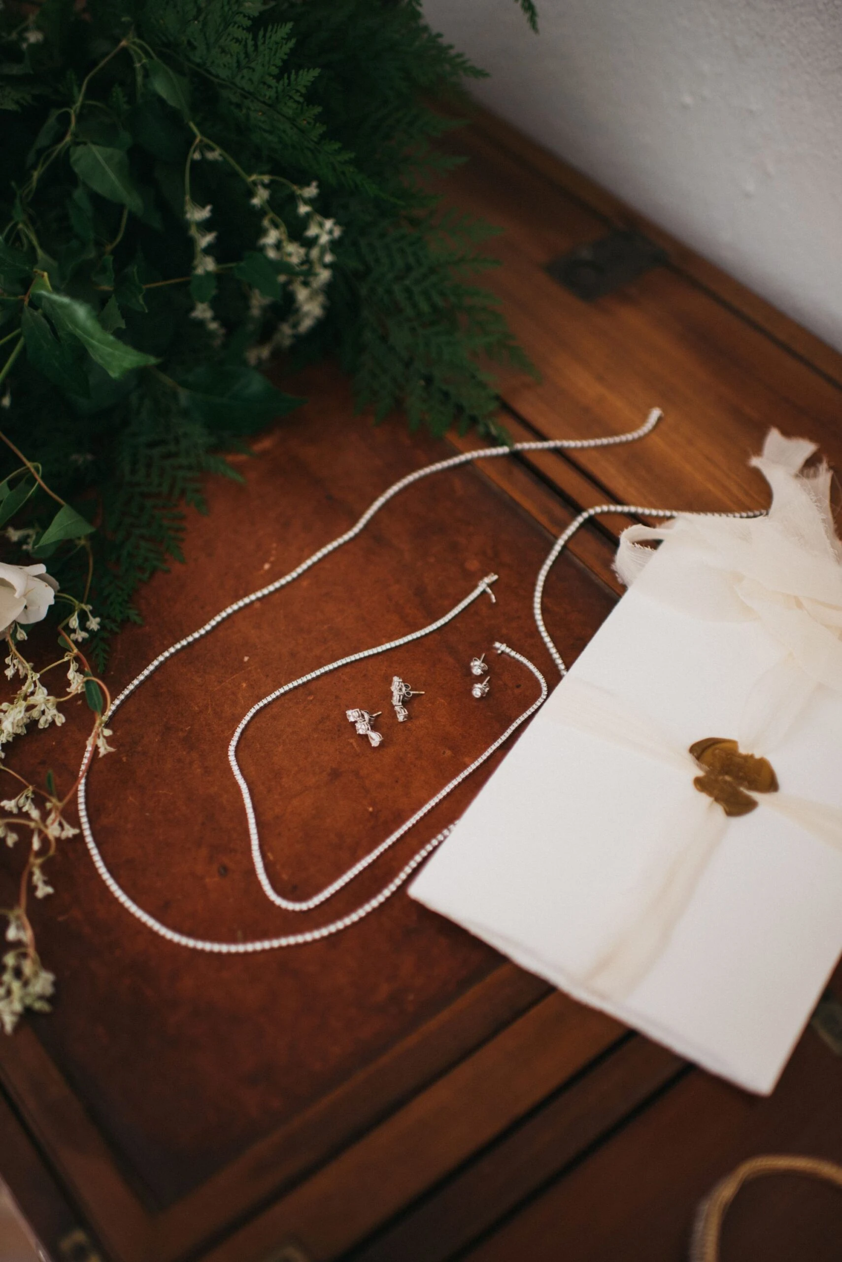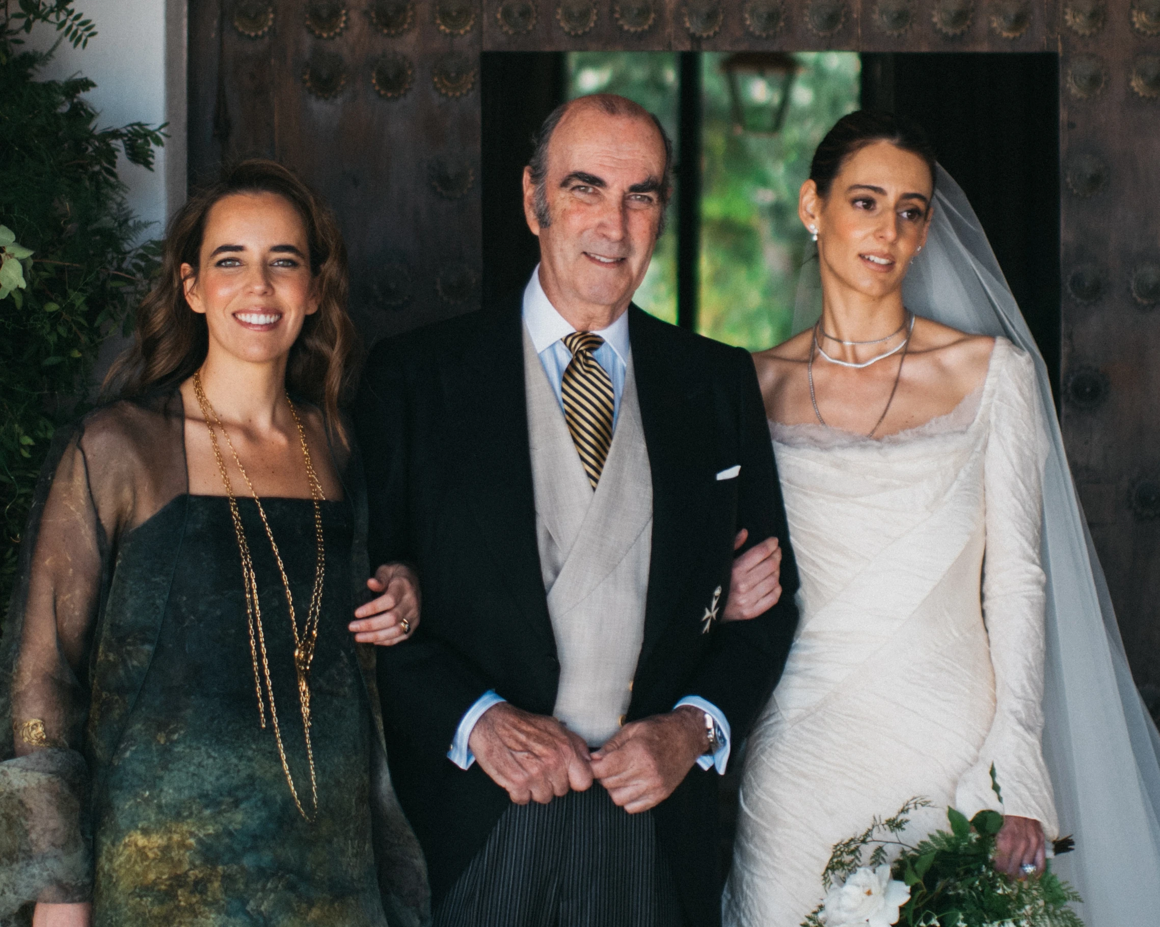 Carlota llevó el anillo de pedida, una pulsera que su abuela también usó el día de su boda y tres joyas de Ansorena: unos pendientes y dos collares rivière de oro blanco con diamantes. «Nunca pensé que iban a ser el punto perfecto entre elegancia, juventud y modernidad, pero según mi hermana fueron la parte más importante de mi look», reconoce la novia.