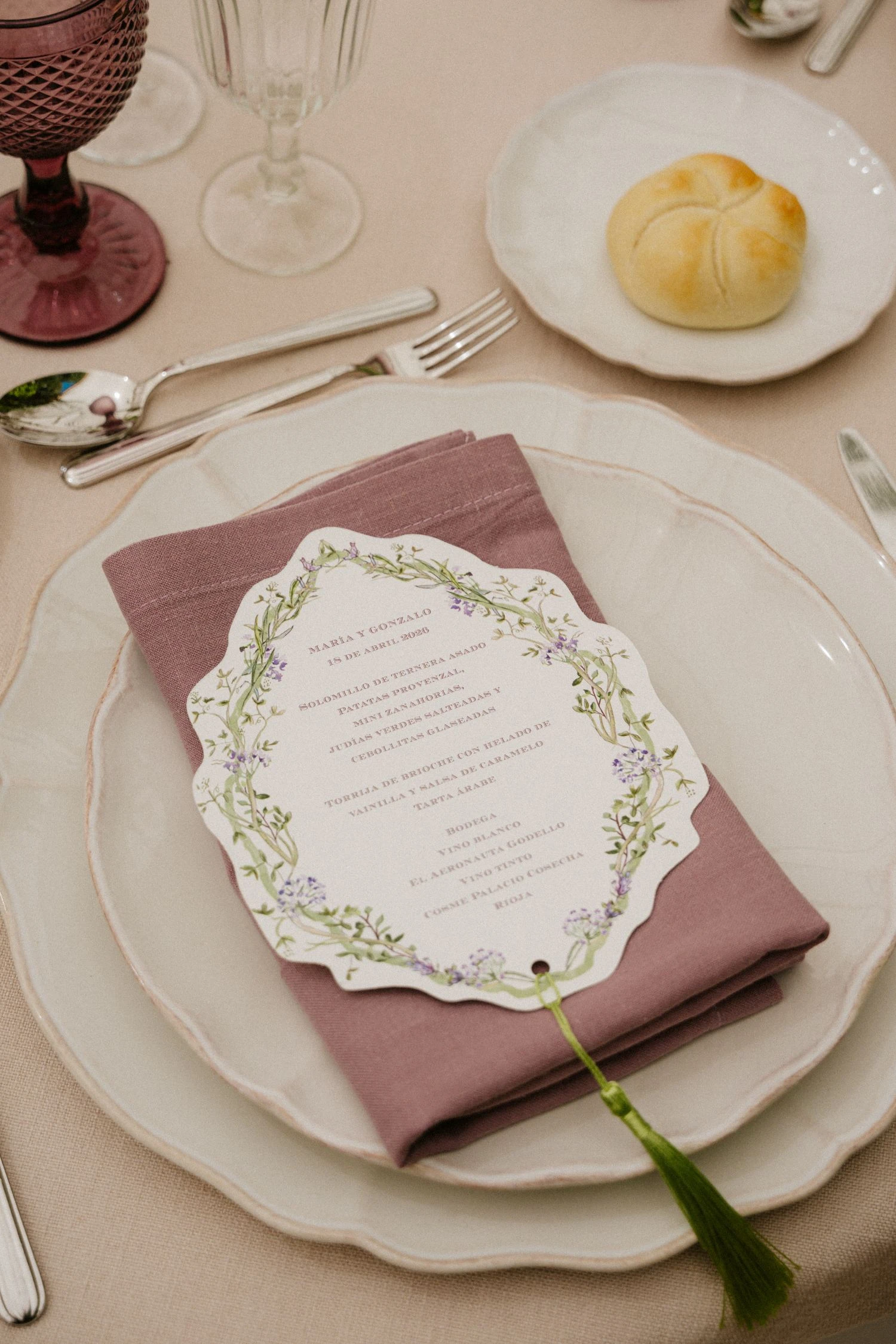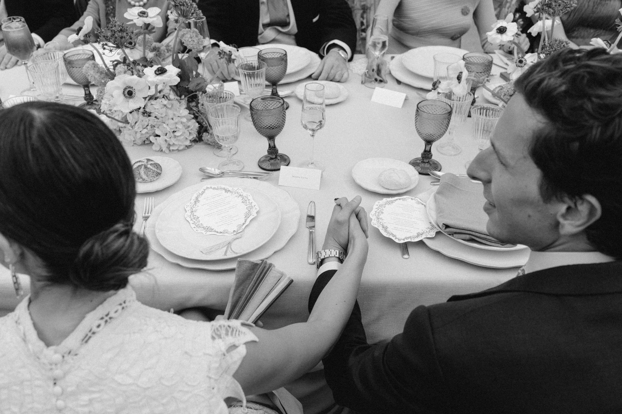 «La papelería fue cosa de Alicia de Markar y el proceso fue especialmente emotivo. Ella y mi madre son íntimas amigas y, junto a su hija Marta, diseñamos los misales, minutas y el álbum de testigos inspirándonos en Granada. Carolina Bouquet se encargó de toda la decoración floral y el seating plan».
