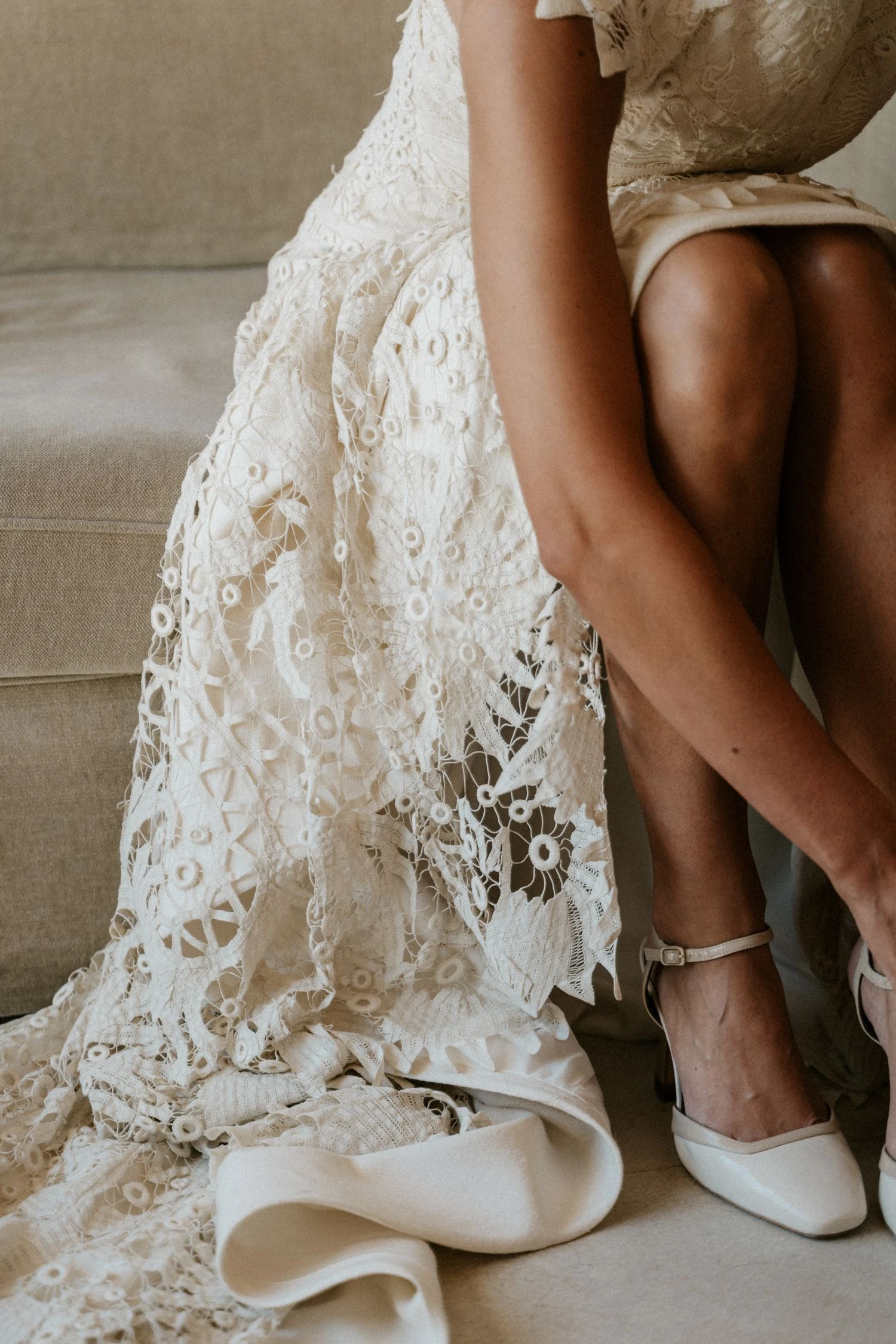 «Encontrar los zapatos fue lo más difícil. Quería un diseño vintage y personalizamos un modelo de punta cerrada de flordeasoka con un efecto abierto en la parte trasera. En el baile me cambié a unas cuñas de lino de Castañer x Casilda se casa».