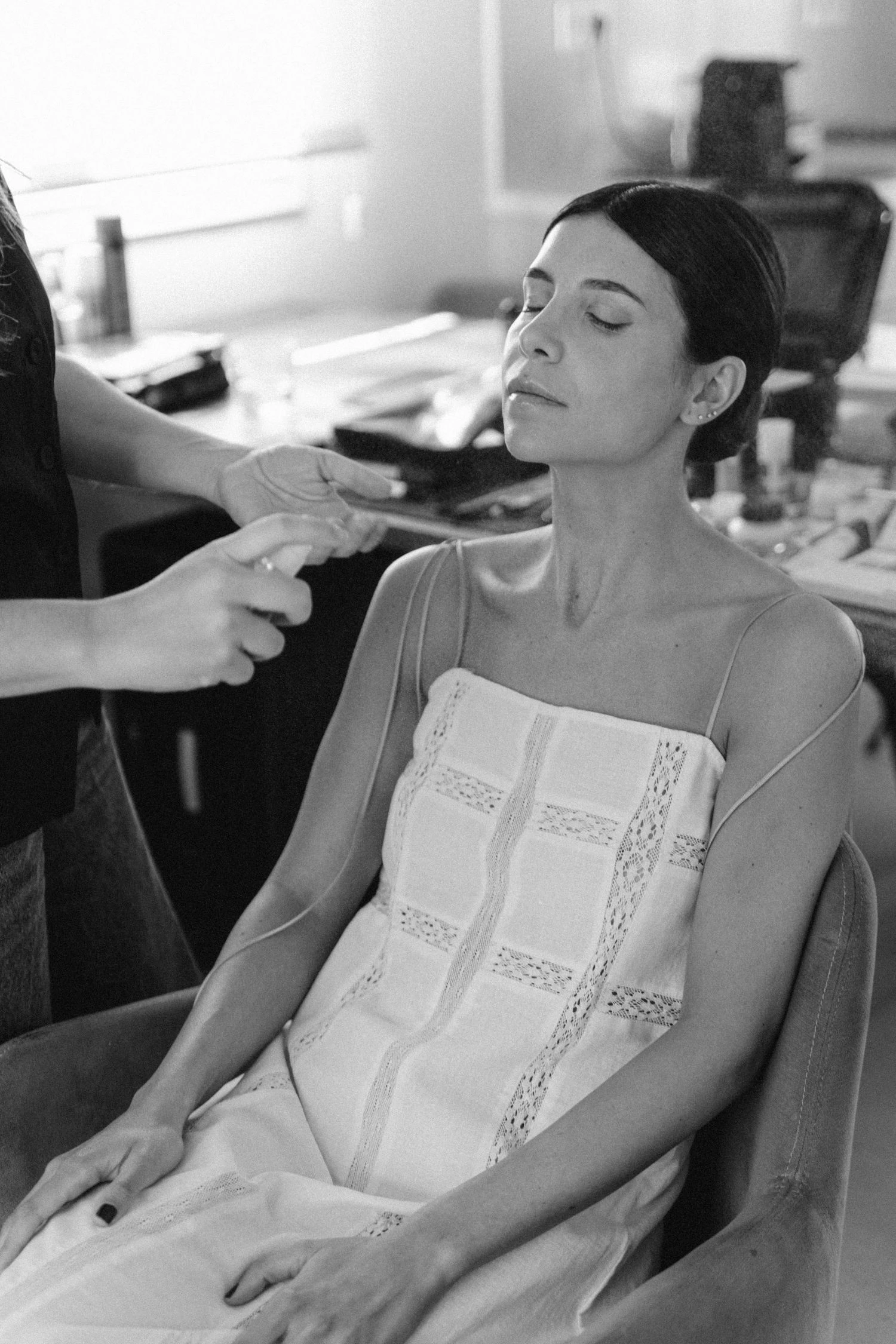 María se preparó con una bata y un camisón de Dreaming Habits y el maquillaje y la peluquería estuvieron a cargo de Fini Rico: «Apostamos por un look muy natural y un moño de bailarina con el que me sentí totalmente yo».