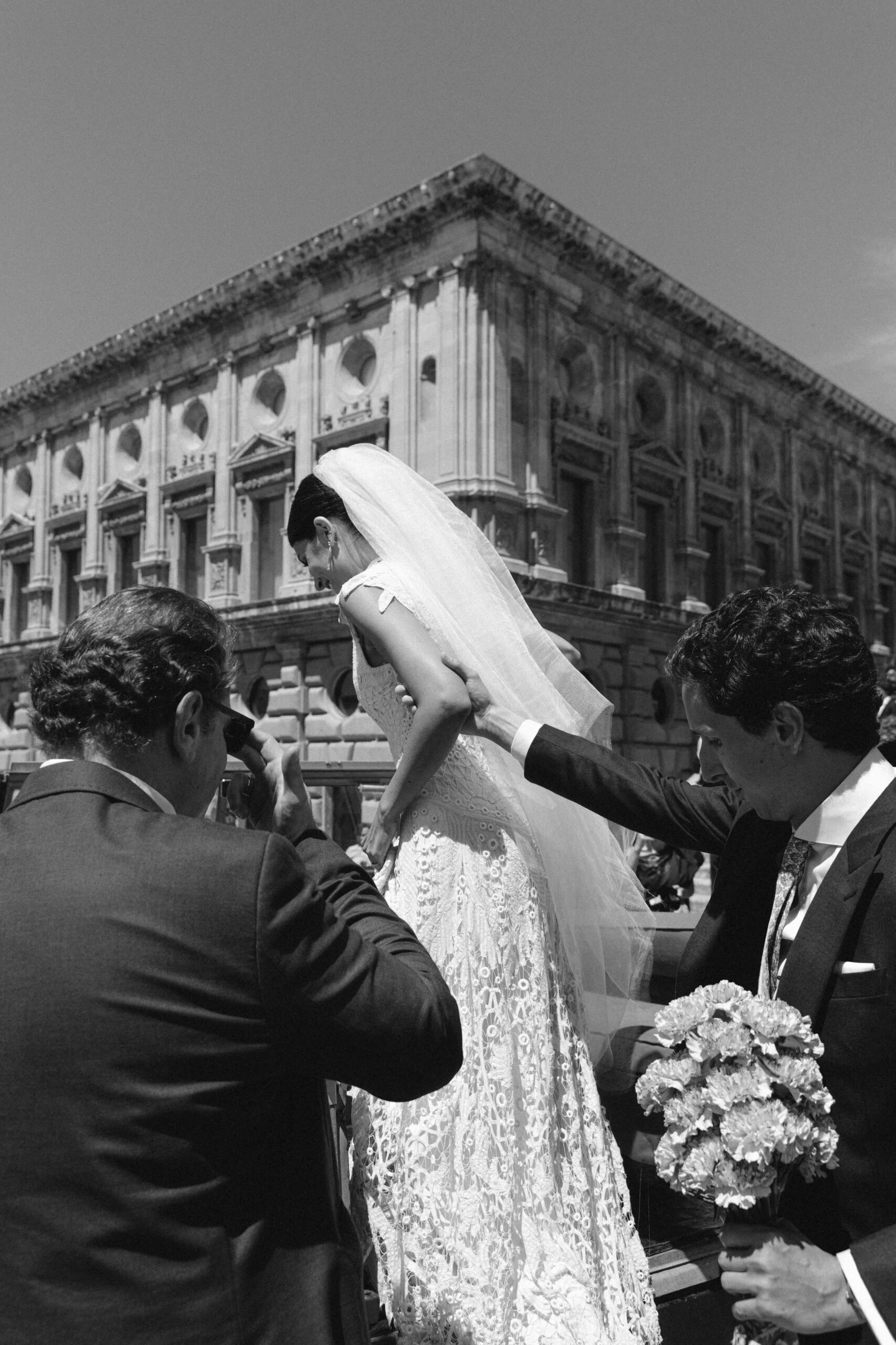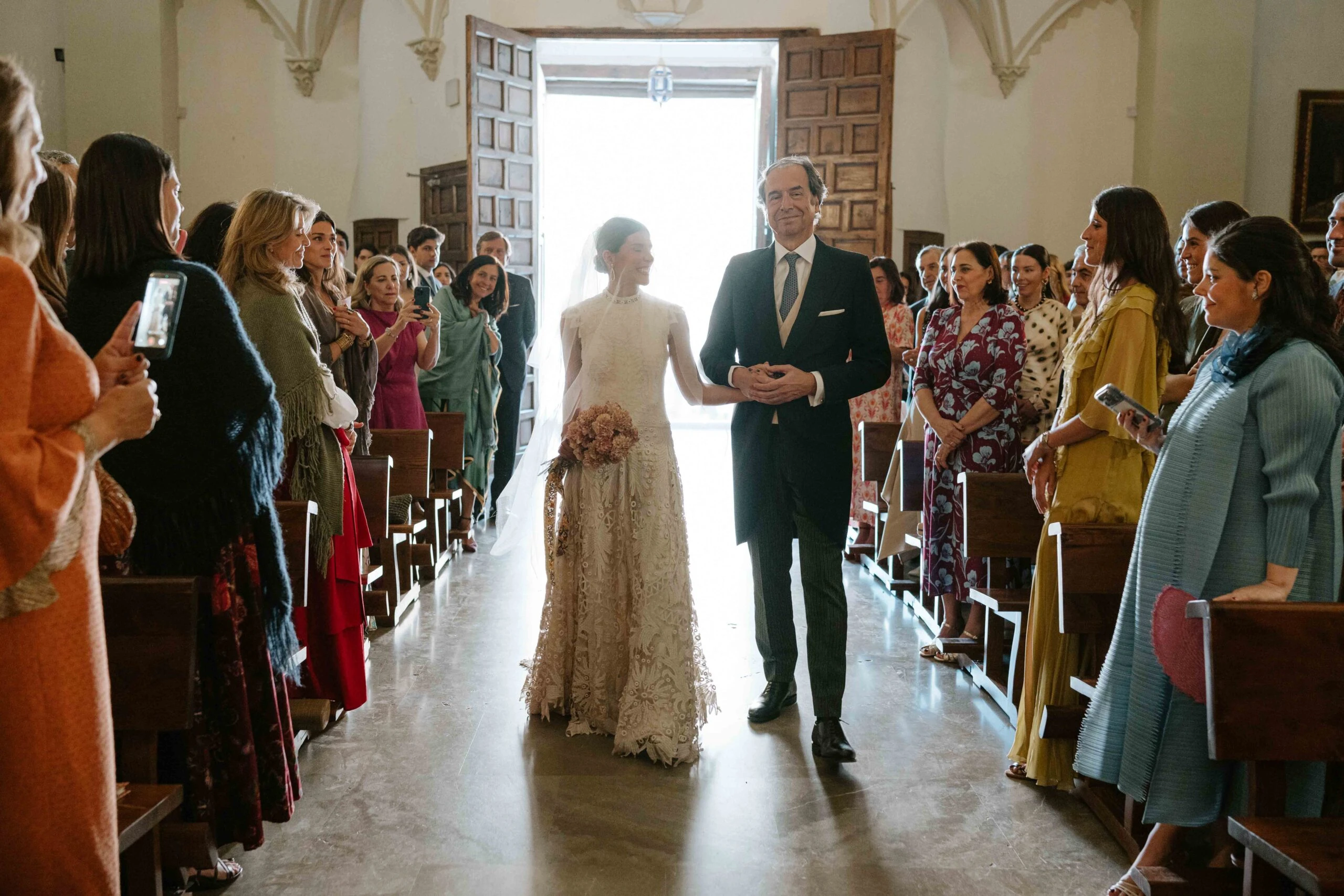 La ceremonia se celebró en Santa María de la Alhambra: «Nos encantó la idea de que los invitados pudiesen llegar paseando a través de los jardines de la Alhambra».