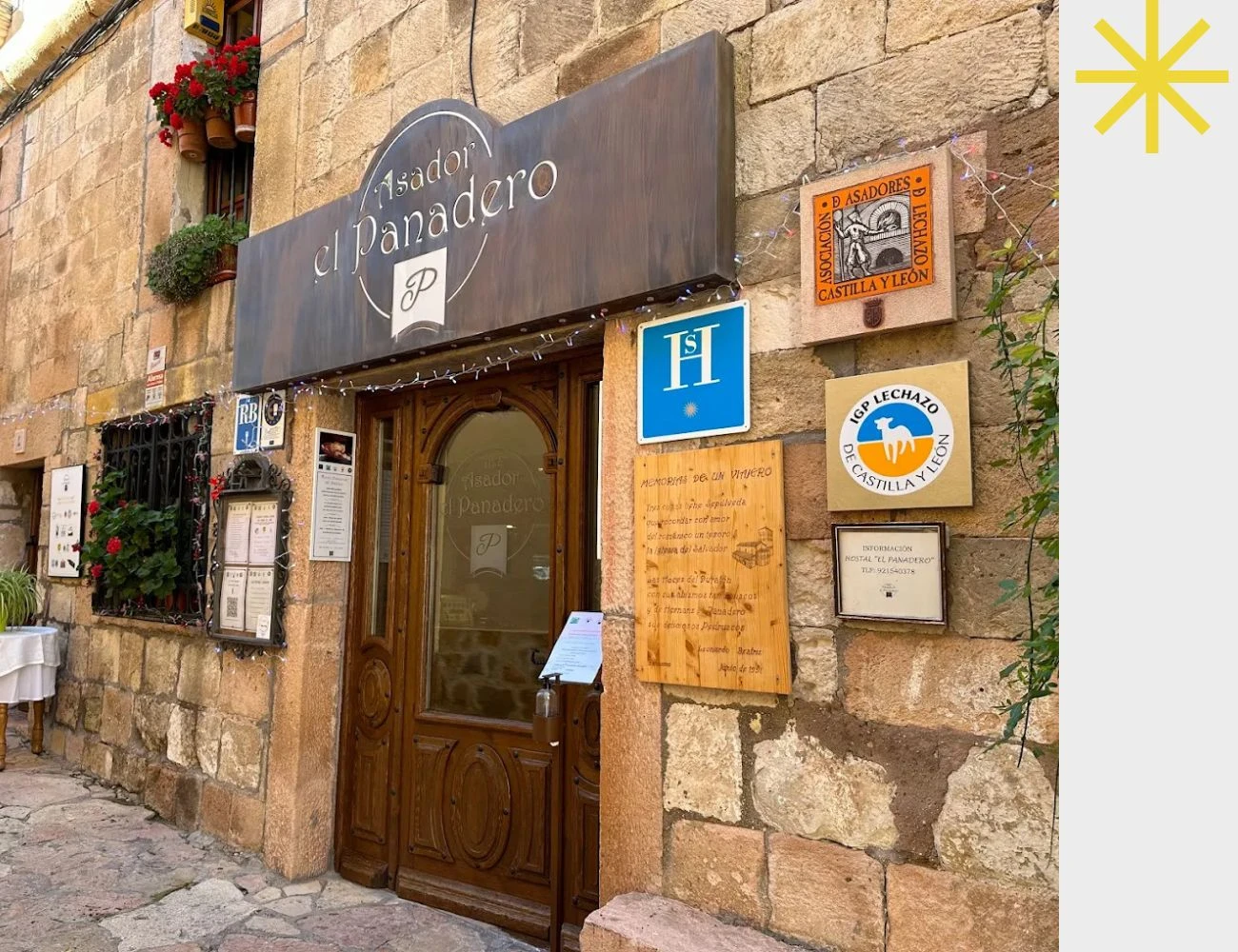 «Casa Román, es un restaurante familiar en el centro del pueblo, ofrece cocina castellana sin pretensiones. Su lechazo y vino son imprescindibles, además, sus dueños Ana y Tete, se han convertido ya en buenos amigos».